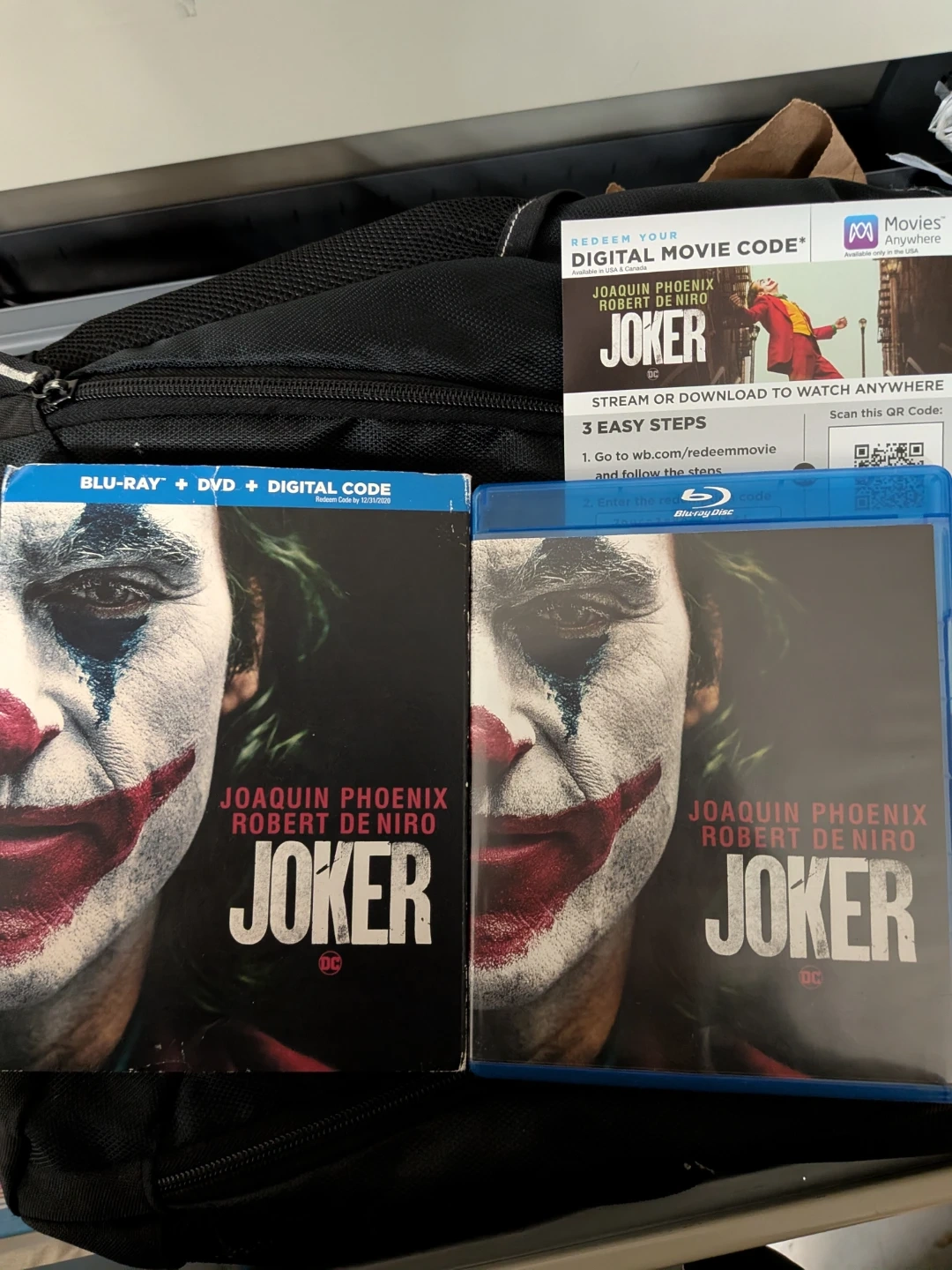 Buy & SellJoker Blu-ray + DVD + Digital CodeJoker Blu-ray + DVD + Digital Code$12This is the Joker movie on Blu-ray and DVD, including a digital code. The movie stars Joaquin Phoenix and Robert De Niro. Run time is 122 minutes.ConditionNewBrandDC ComicsWHERE TO MEETwhole foodView MapSELLERverifiedEricStuyvesant Town35327 reviews0 chats·1 favorites·3 viewsSEND CHAT TO SELLERHi Eric! I’m interested in your listing.Hi Eric! I’m interested in your listing.Get the Karrot app to chatSign In to chat