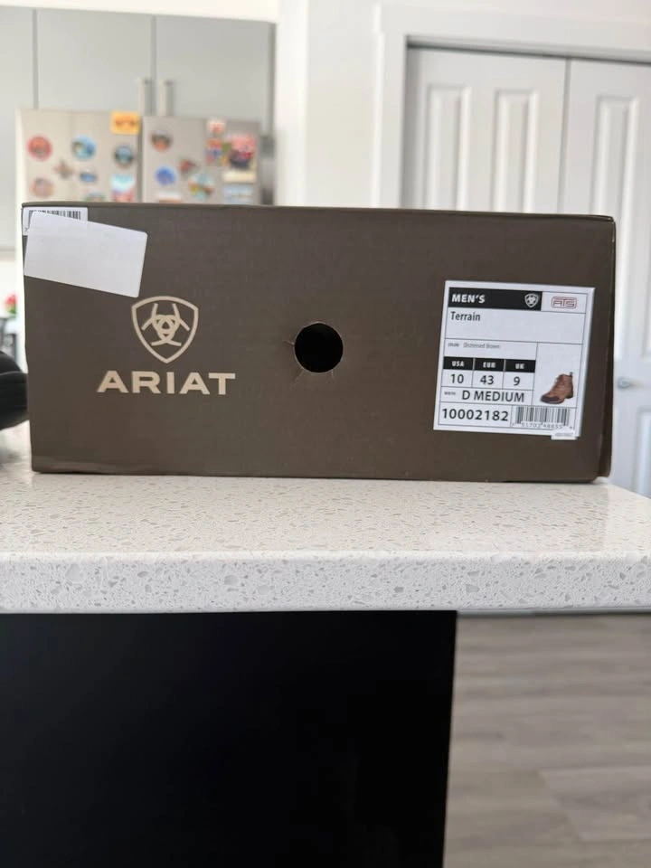 Brand new Ariat Men's Terrain boots in Distressed Brown color. Men's USA size 10, EUR 43, UK 9. Width is D Medium.