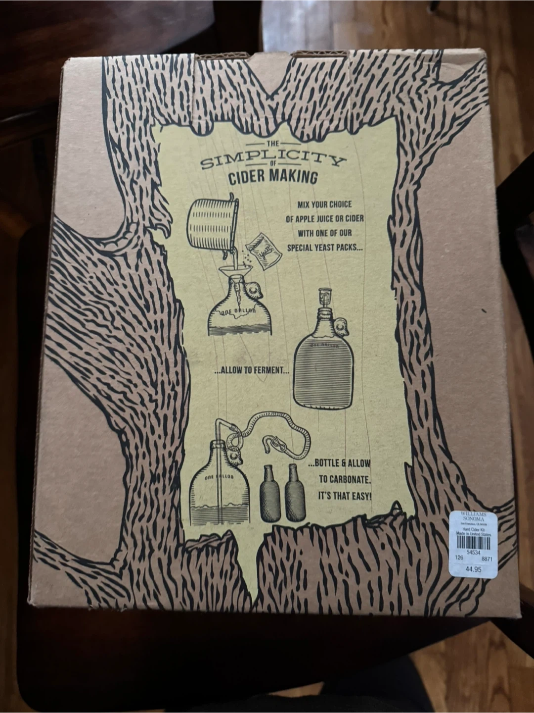 I'm selling a brand new Williams Sonoma Hard Cider Kit! This kit is perfect for making your own cider at home. It's still in the box, brand new and ready for you to start brewing. I bought this for $44.95.