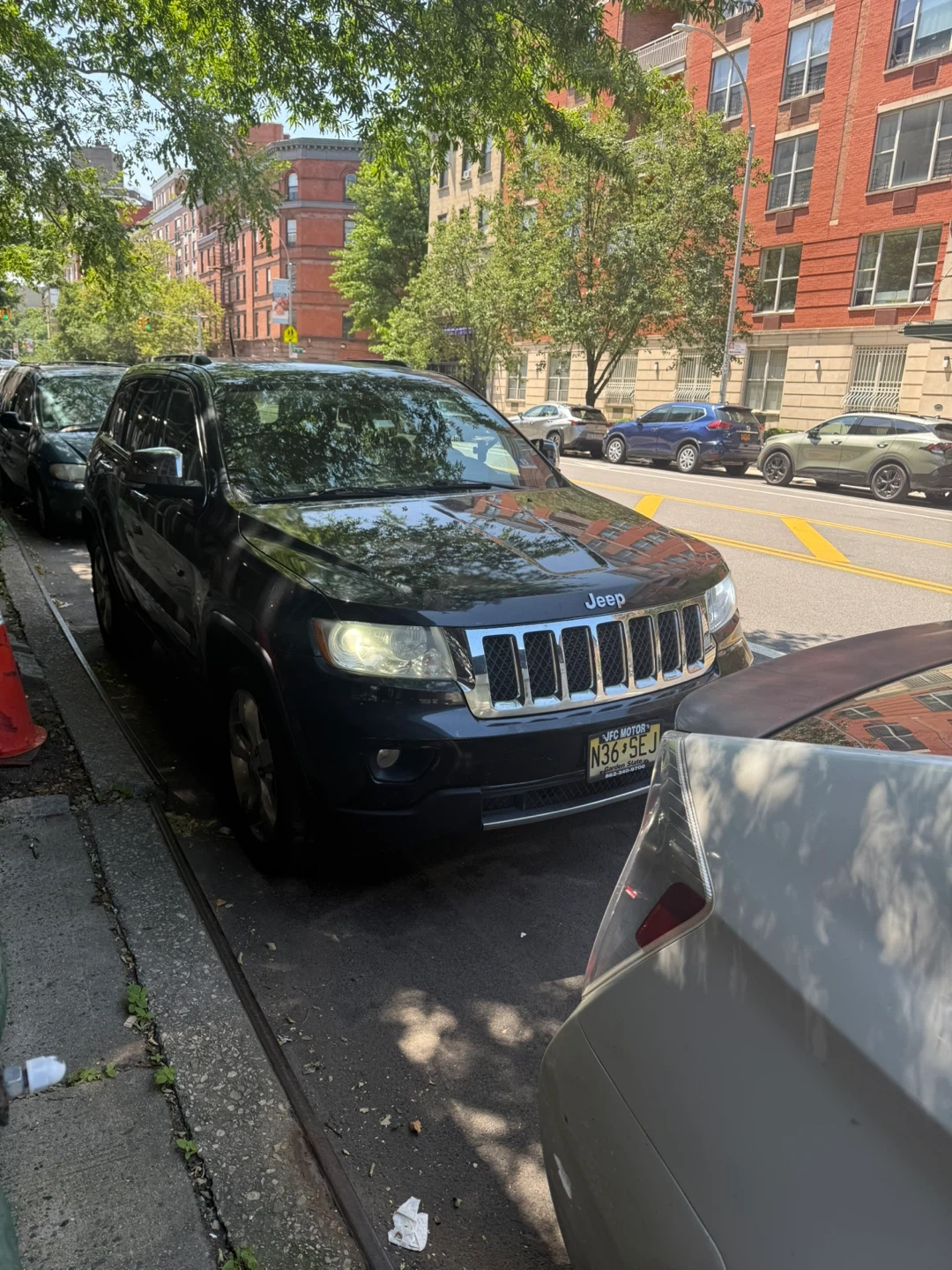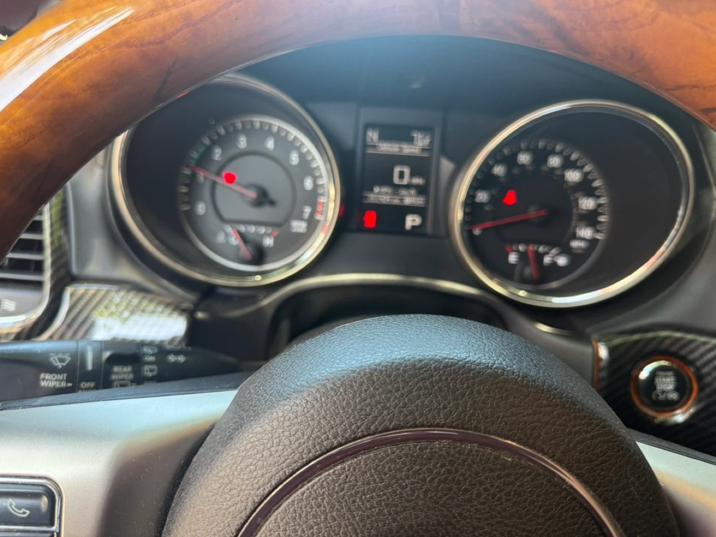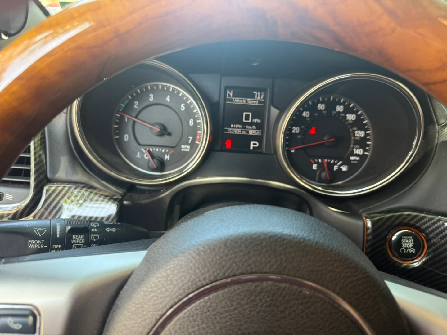 This listing is for a black leather interior from a Jeep Grand Cherokee. It includes front and rear seats with white accent stitching. Features a sunroof and wood-grain steering wheel trim. Front driver's seat shows some wear.