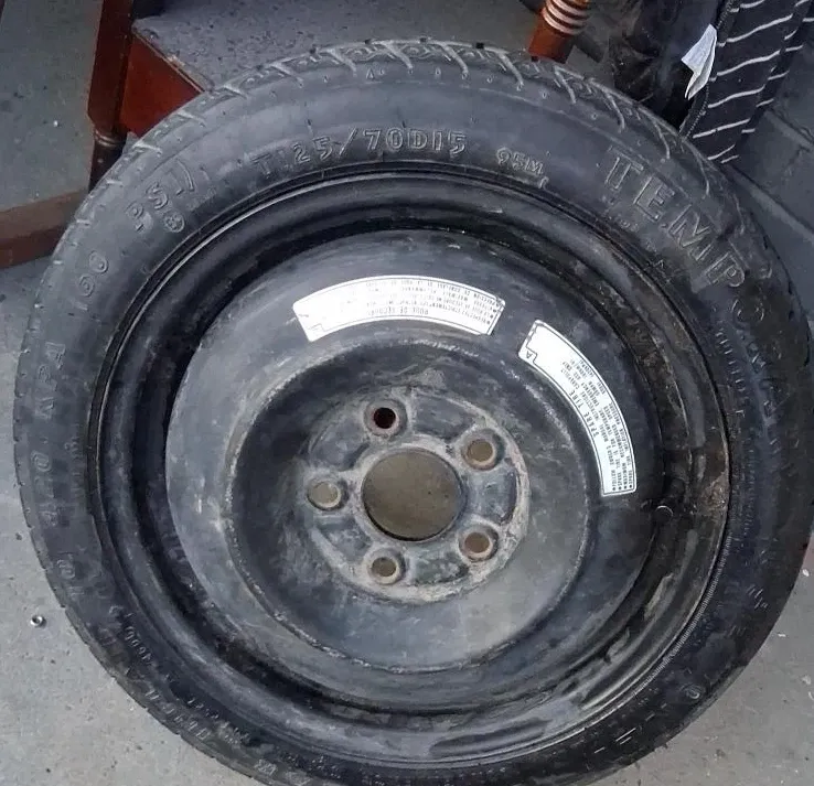 This is a temporary spare tire with a size of 125/70D15. It's a compact spare designed for emergency use. The tire size is 125/70D15.