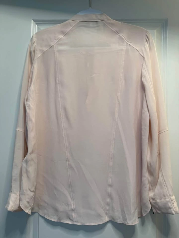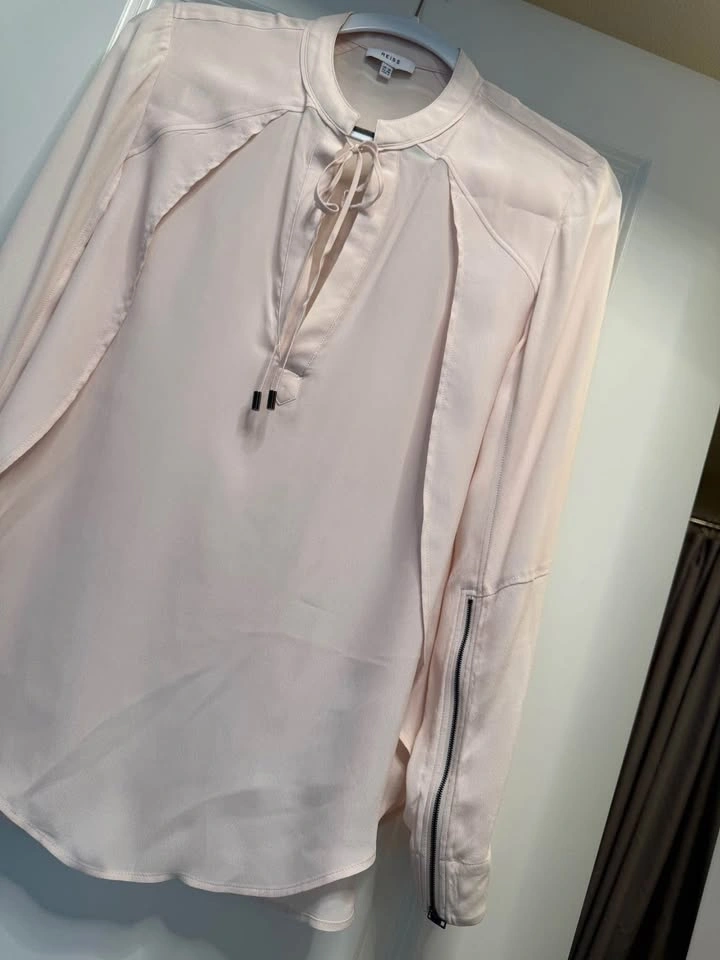 Reiss is a modern, global fashion brand offering stylish womenswear, known for high-quality, well-fitting, and stylish clothing with timeless and contemporary designs. Only worn once, this light and breezy blouse has zipper details on the sleeves. Size: 6. Originally purchased for $190