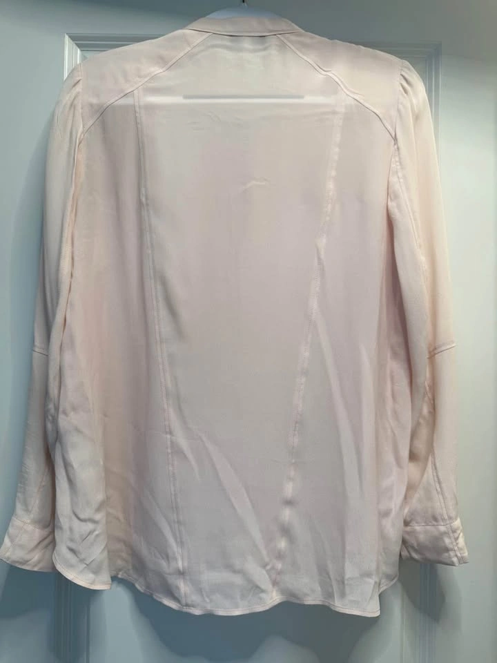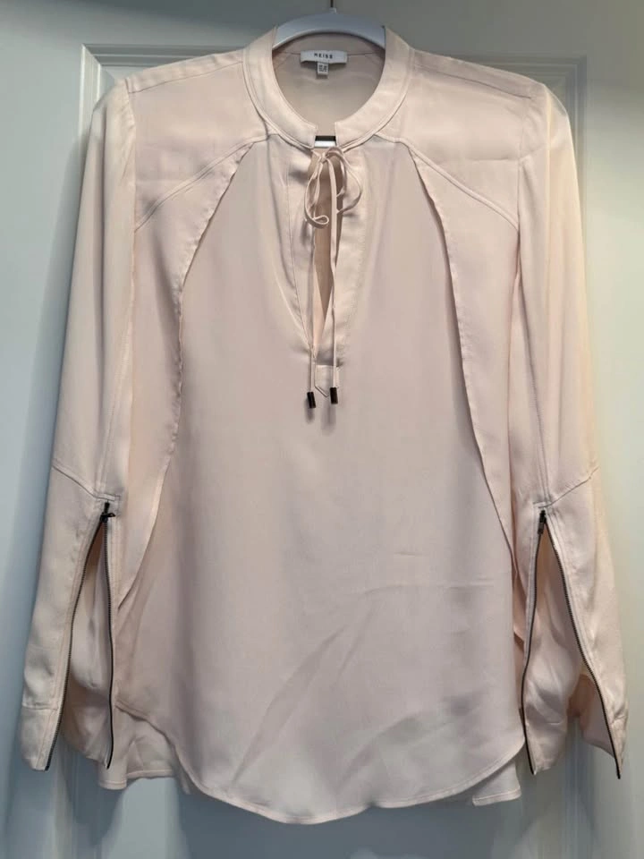 Reiss is a modern, global fashion brand offering stylish womenswear, known for high-quality, well-fitting, and stylish clothing with timeless and contemporary designs. Only worn once, this light and breezy blouse has zipper details on the sleeves. Size: 6. Originally purchased for $190