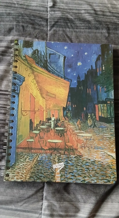 This spiral notebook features artwork inspired by Van Gogh's "The Starry Night" on the front cover and "Olive Trees" on the back. It's great for sketching, journaling, or jotting down notes. The pages are blank and ready for your creativity!