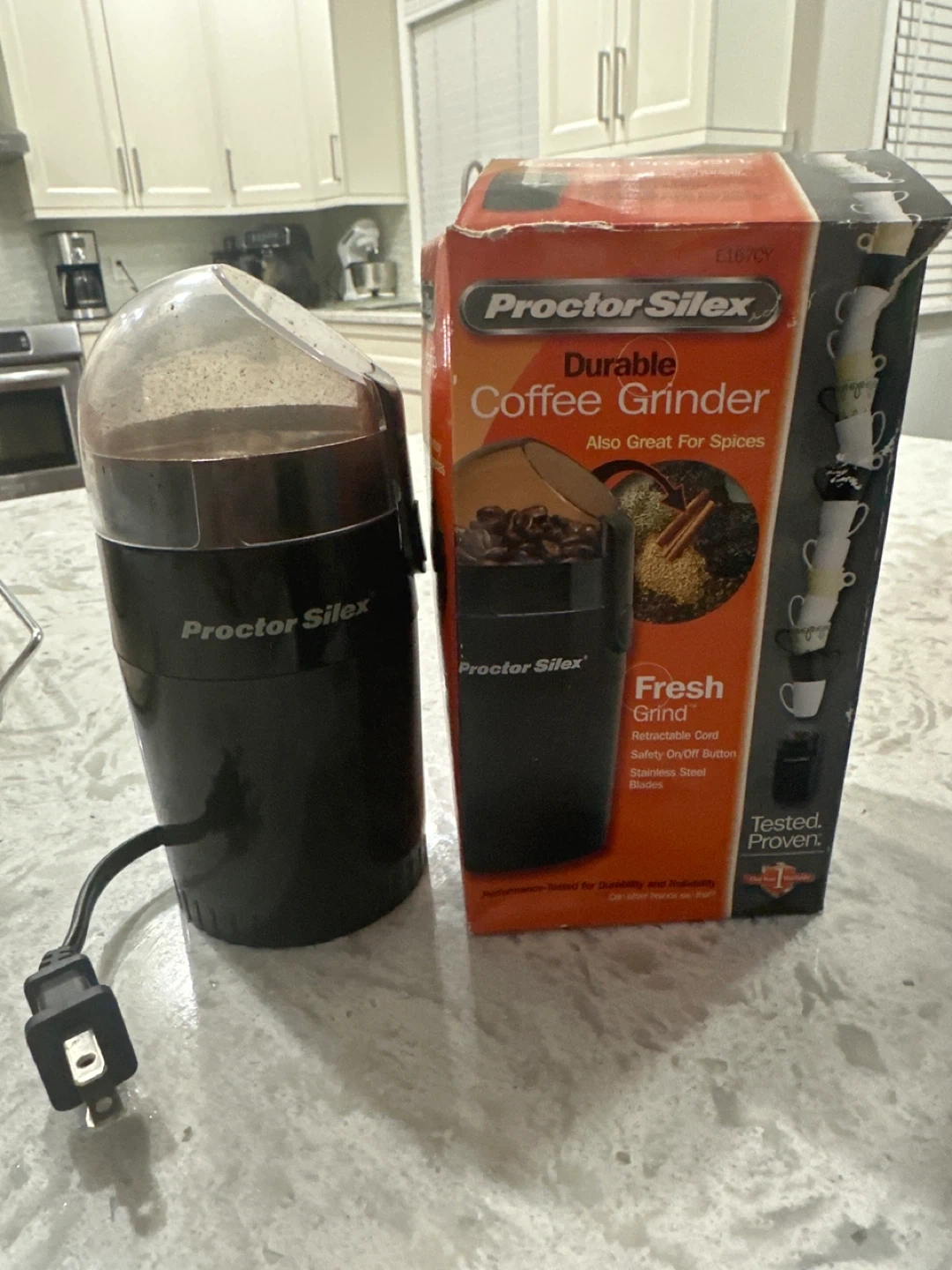 Buy & SellProctor Silex Durable Coffee GrinderProctor Silex Durable Coffee Grinder$11Proctor Silex coffee grinder, also great for spices. It grinds fresh. Retractable cord and safety on/off button. Tested and proven durable.ConditionLike newBrandProctor SilexWHERE TO MEETCheck LocationView MapSELLERverifiedTayaTynehead1044 reviews0 chats·0 favorites·9 viewsSEND CHAT TO SELLERHi Taya! I’m interested in your listing.Hi Taya! I’m interested in your listing.Get the Karrot app to chatSign In to chat