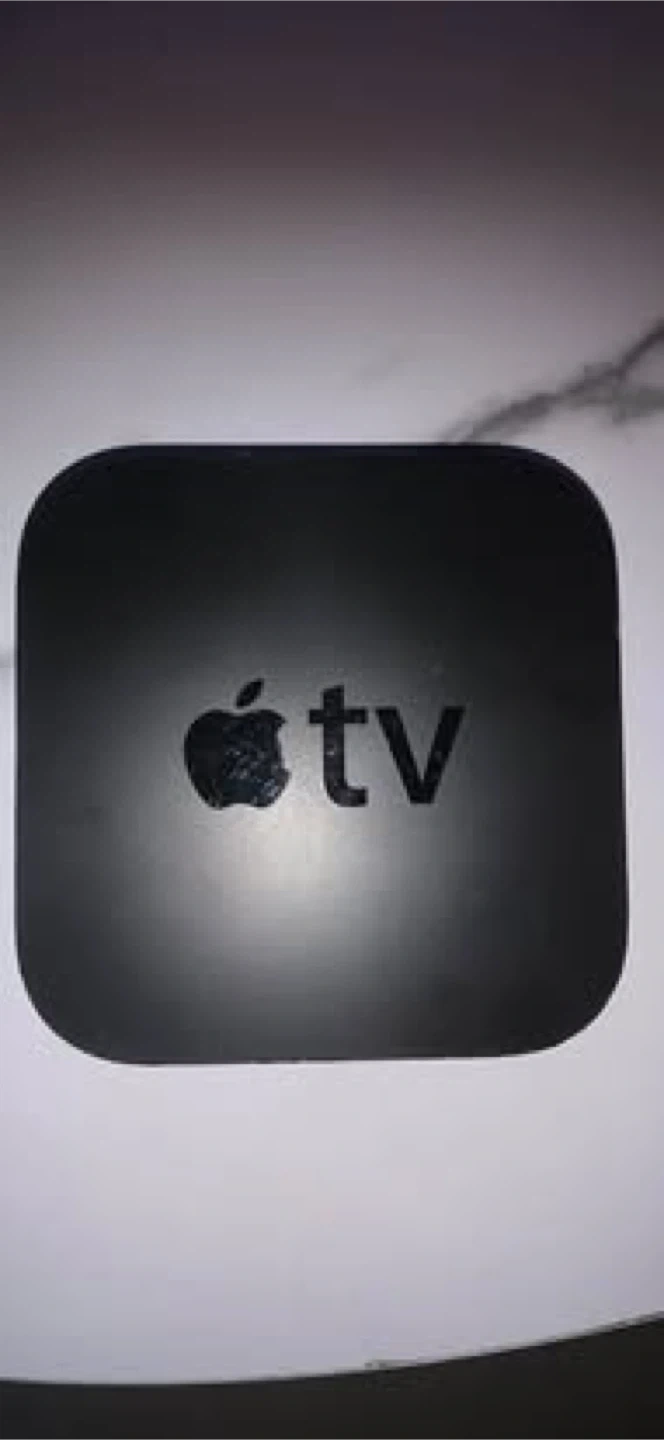 This is an Apple TV media streamer. It has HDMI, Optical Audio, and USB ports. Connect it to your TV for streaming content.