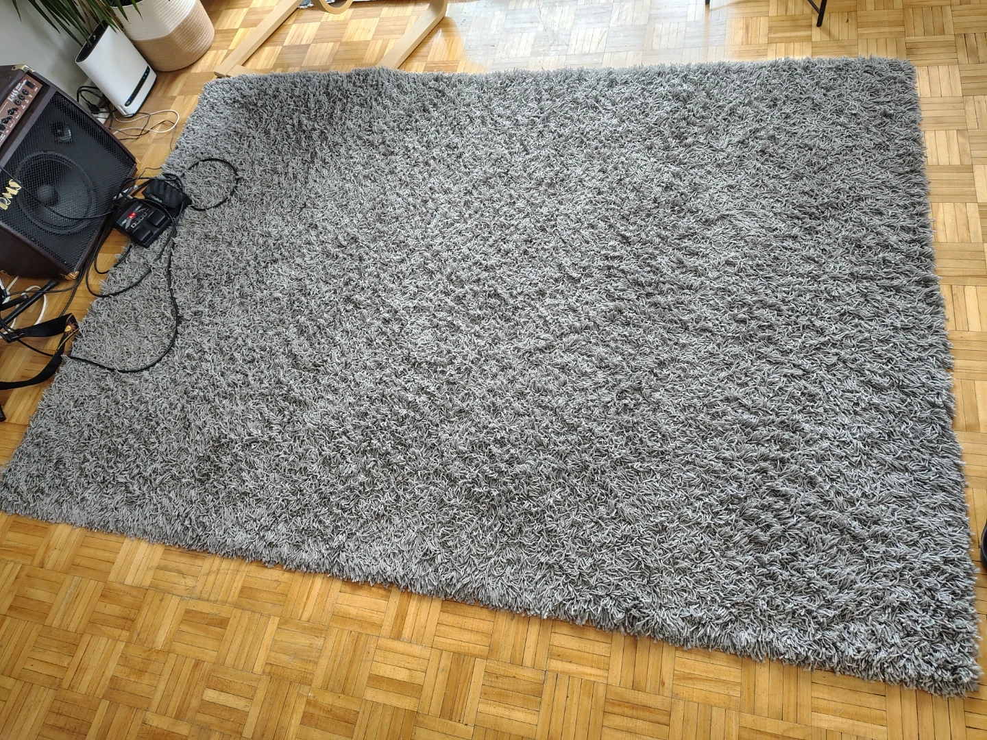 Selling a Pera Shaggy rug in light grey! It's in great condition and measures 160 cm by 230 cm. This rug will add a cozy touch to any room.