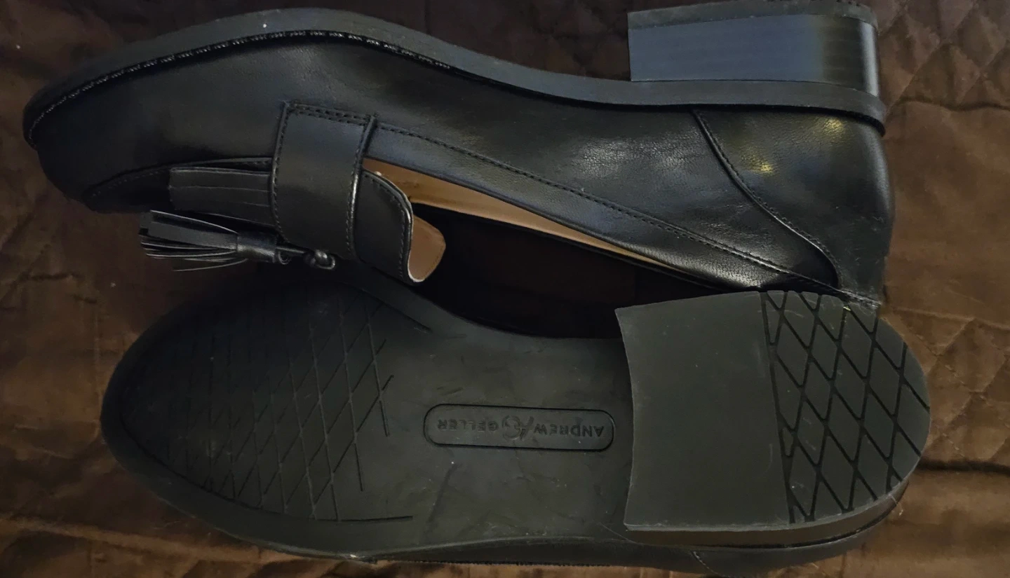 Andrew Geller black tassel loafers. Size 7.5M. Made with all man-made materials. These are stylish and comfortable shoes for everyday wear.