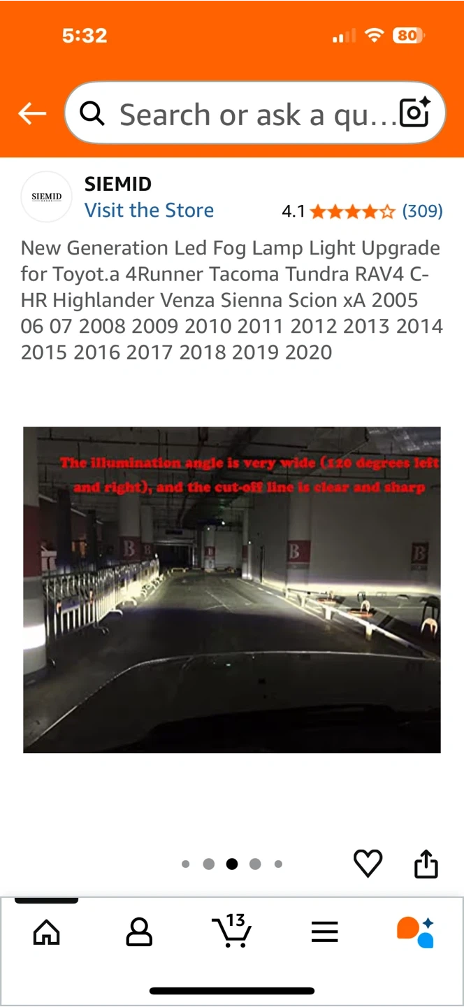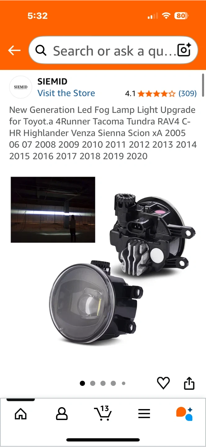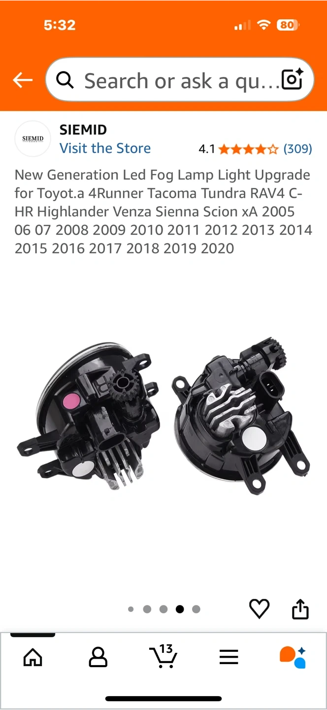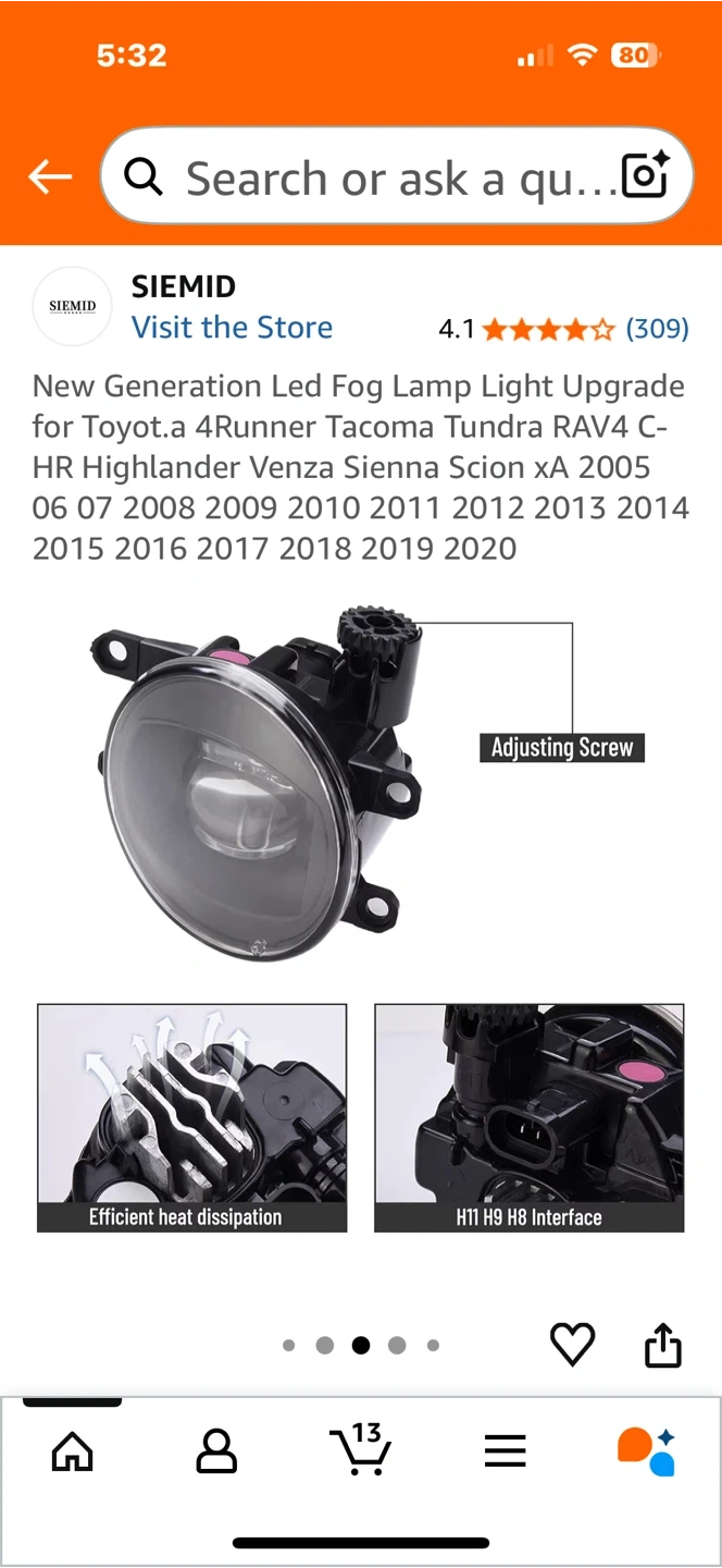 Selling a set of SIEMID LED fog lamps, designed as an upgrade for various Toyota models including 4Runner, Tacoma, Tundra, RAV4, and Highlander, covering model years 2005-2020. These lamps feature efficient heat dissipation and an H11 H9 H8 interface. The illumination angle is wide, ensuring a clear and sharp cut-off line.