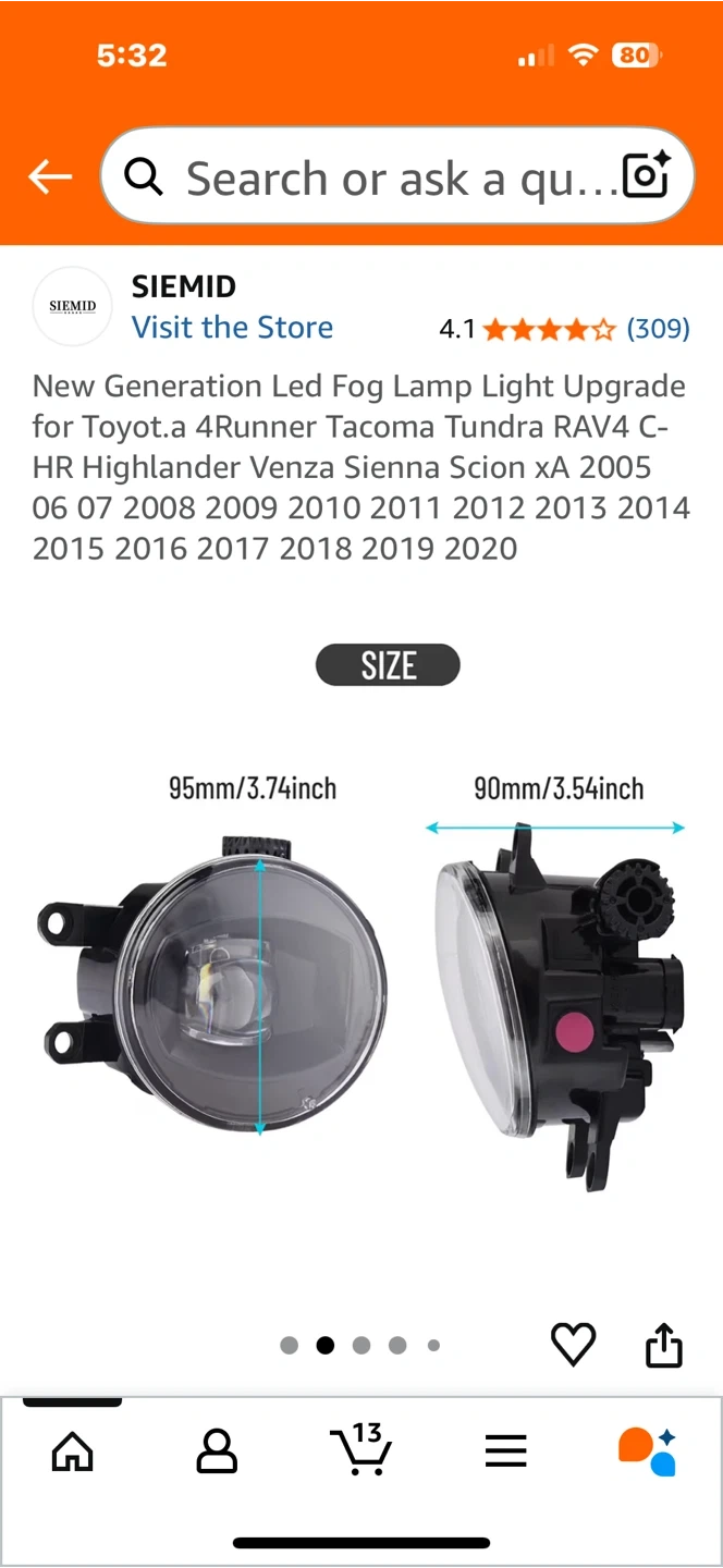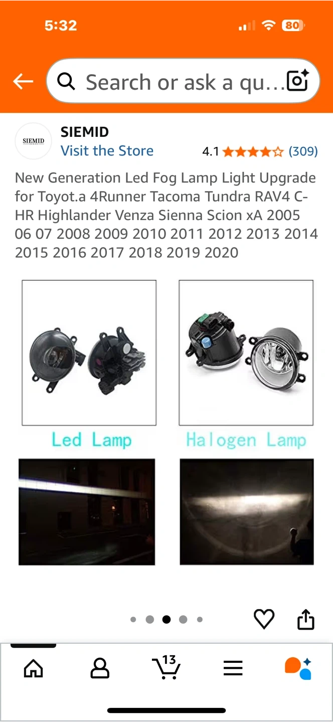 Selling a set of SIEMID LED fog lamps, designed as an upgrade for various Toyota models including 4Runner, Tacoma, Tundra, RAV4, and Highlander, covering model years 2005-2020. These lamps feature efficient heat dissipation and an H11 H9 H8 interface. The illumination angle is wide, ensuring a clear and sharp cut-off line.