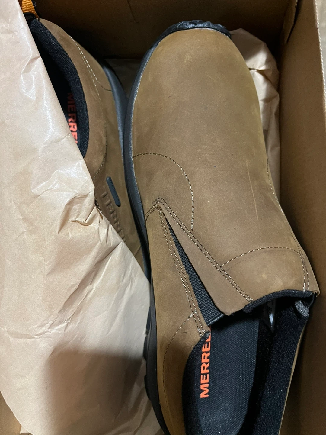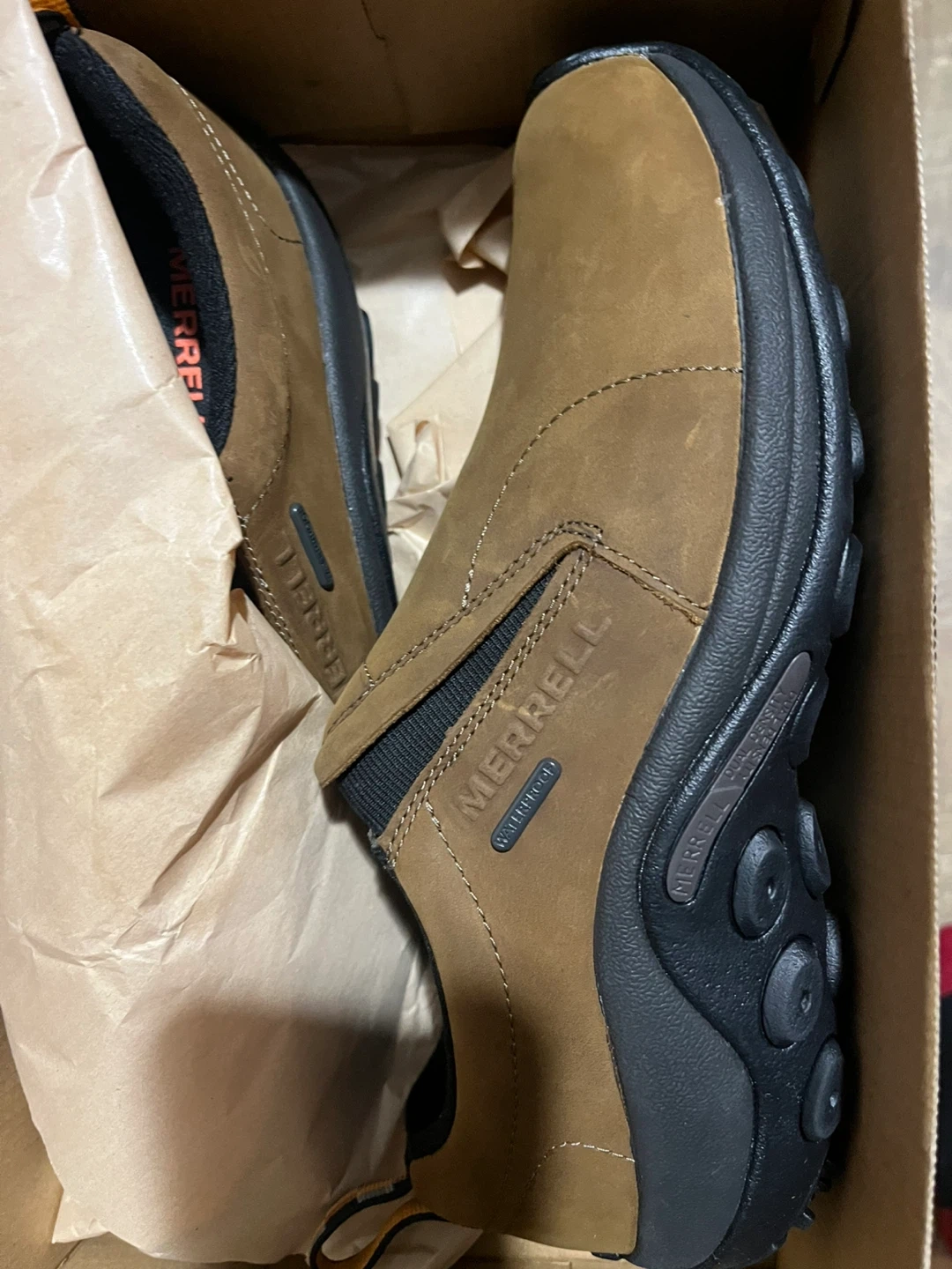Selling a pair of Merrell Jungle Moc Nubuck WP in brown. These are men's size 8.5 US. They come with the original box!