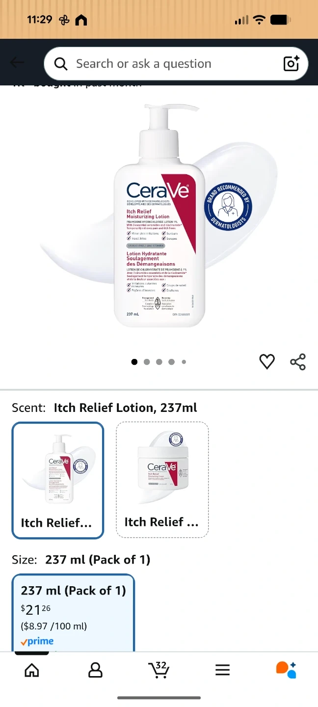 This CeraVe Itch Relief Moisturizing Lotion is formulated with Pramoxine Hydrochloride 1%. It contains 3 essential ceramides and niacinamide to relieve itchiness. Lotion is 237ml.
