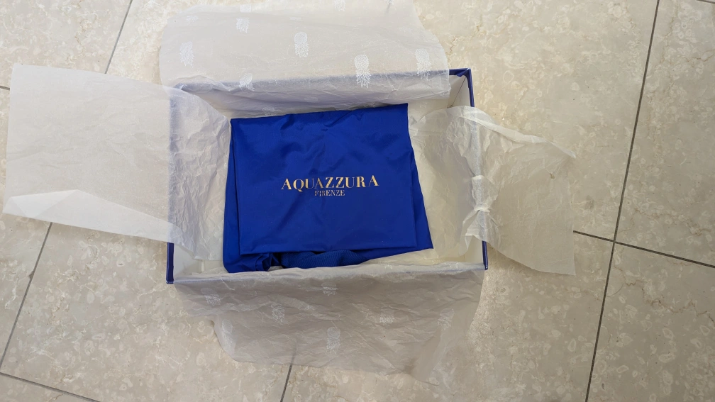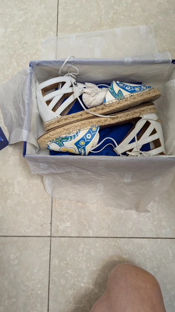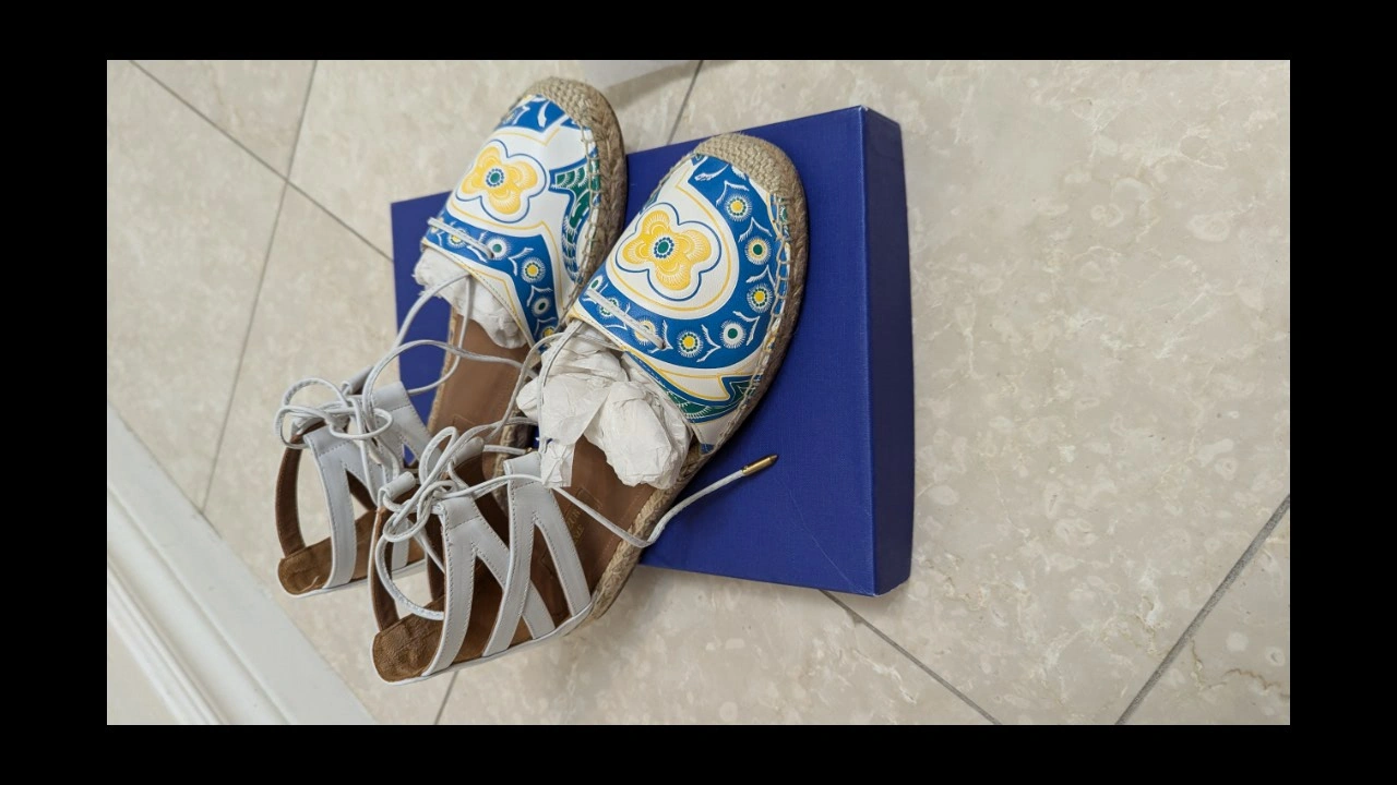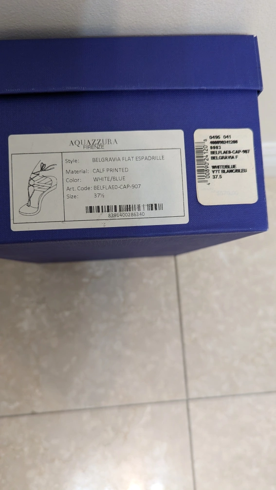 Aquazzura Belgravia Flat Espadrille, calf printed, white/blue, size 37.5. Comes with original dust bag and box. Only available for pick up.