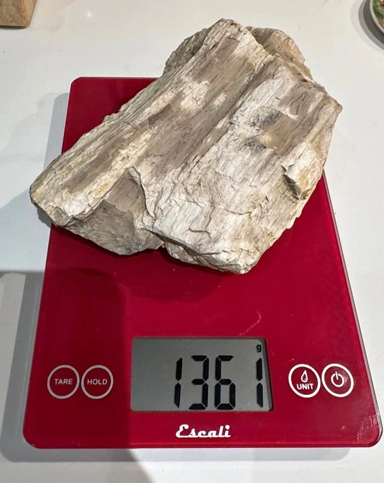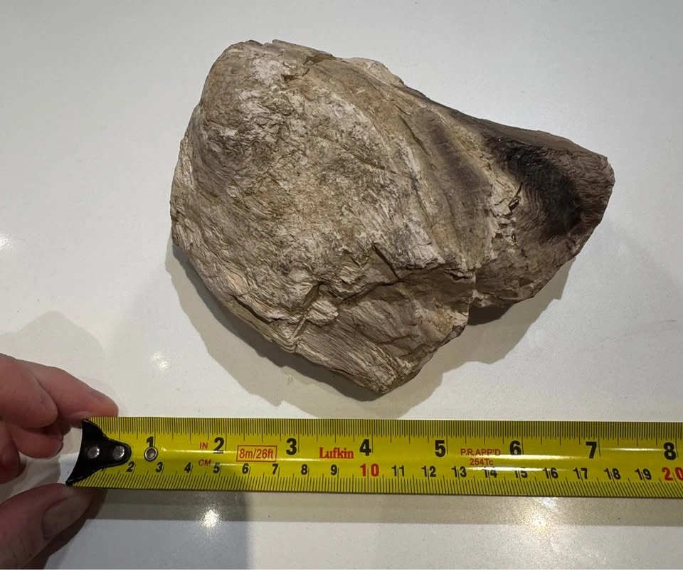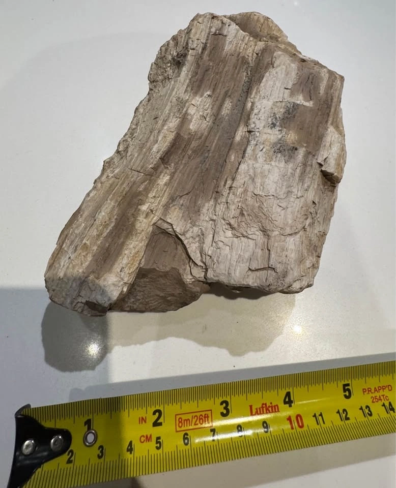 This is a solid, natural piece of fossilized wood with clearly visible grain structure and layered growth patterns. Over time, the original wood has been replaced by silica, preserving the texture and form.