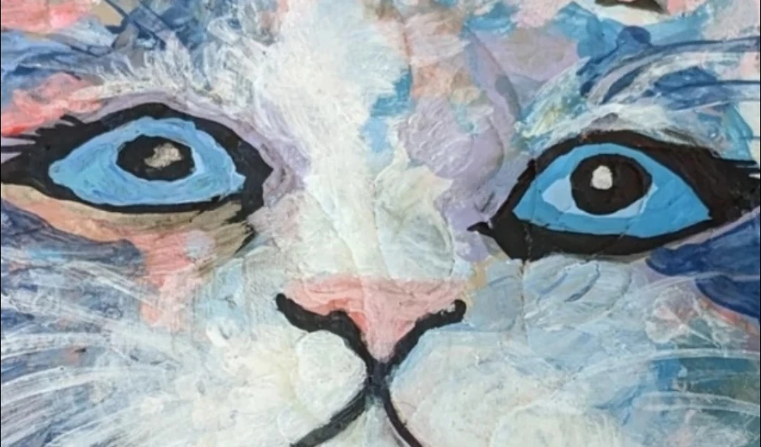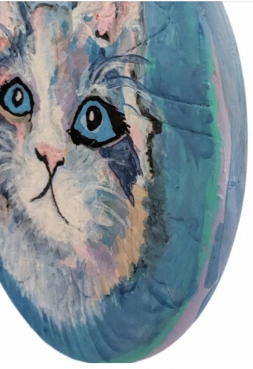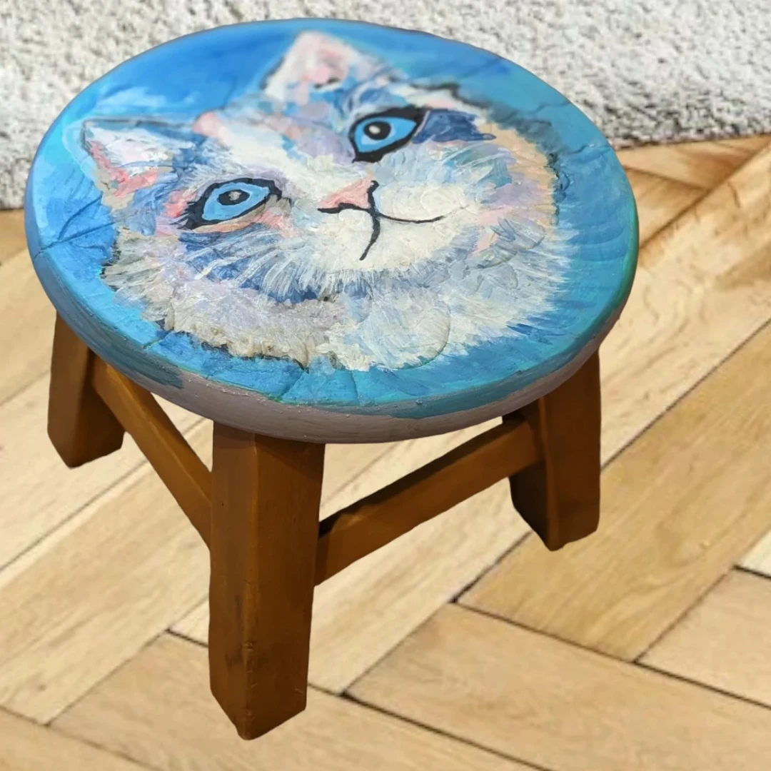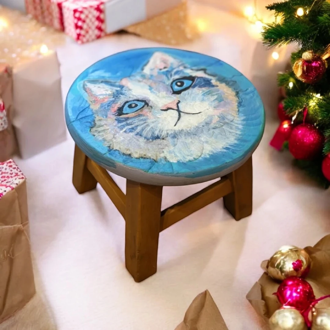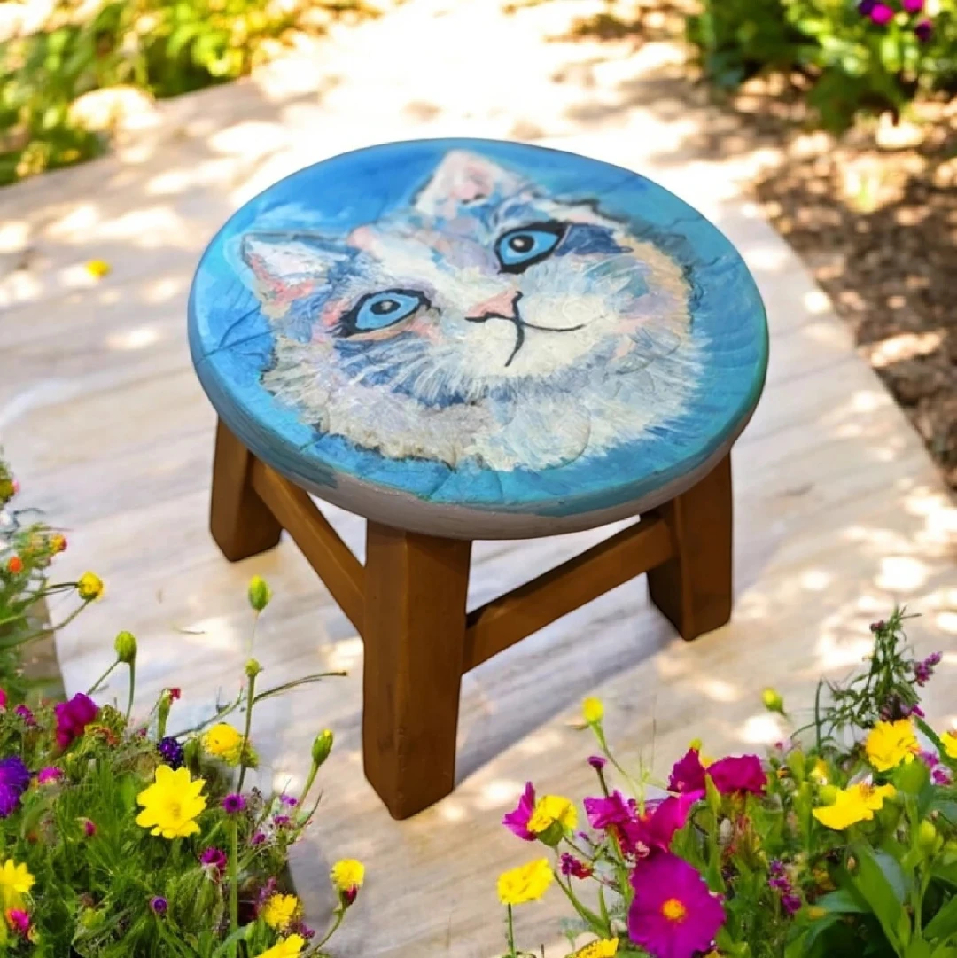 Handcrafted foot rest painting cat portrait:Max sees sky