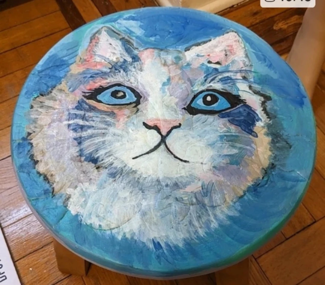 Gorgeous Handpainted Cat portrait footstool. One of a kind signed original.