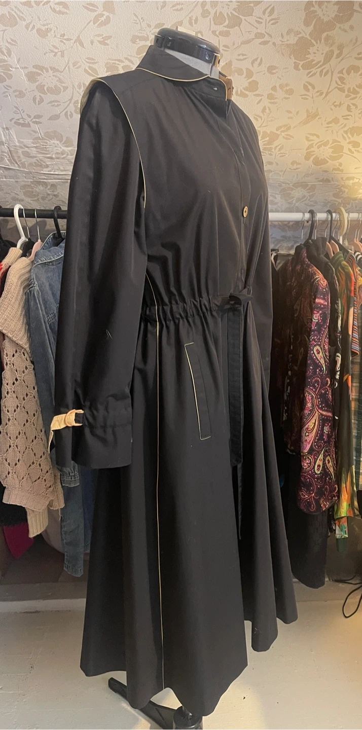 A rare and beautifully tailored vintage West Germany trench-style dress coat by Collection International Imports featuring high-quality Nino-Flex fabric. Elegant, structured, and timeless — this piece can be worn as a dress or a coat.