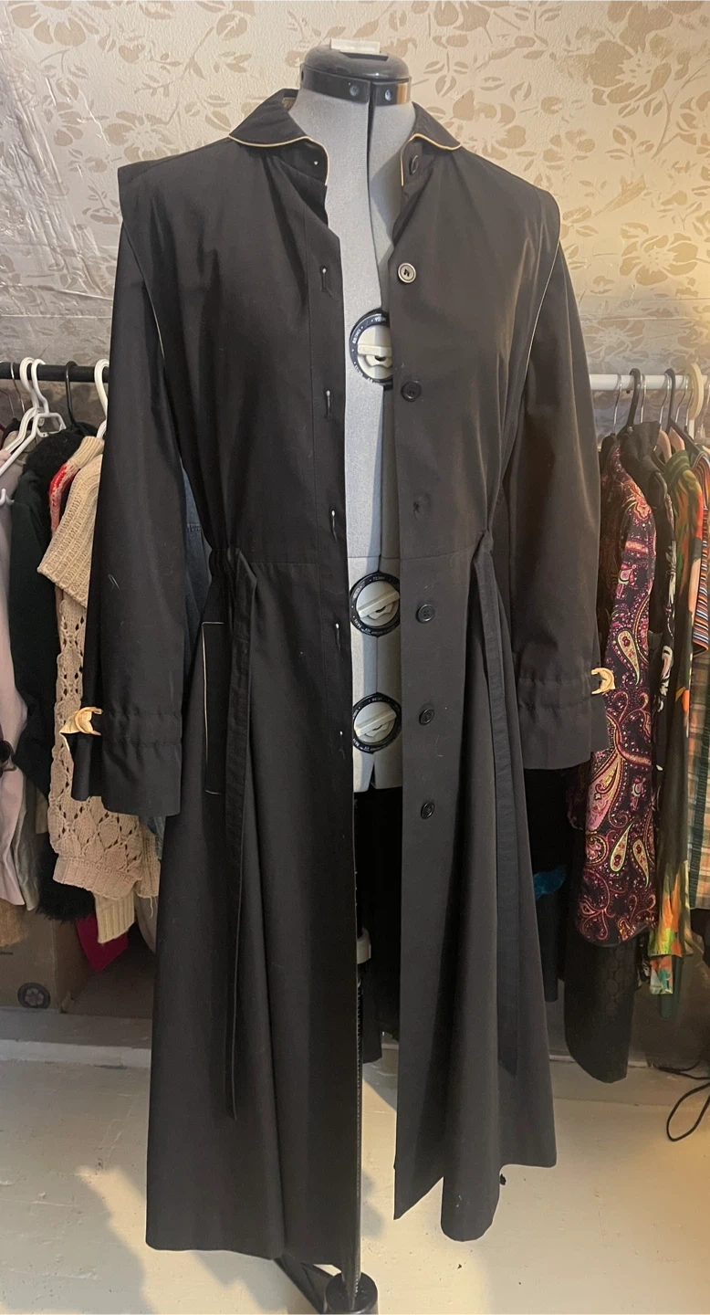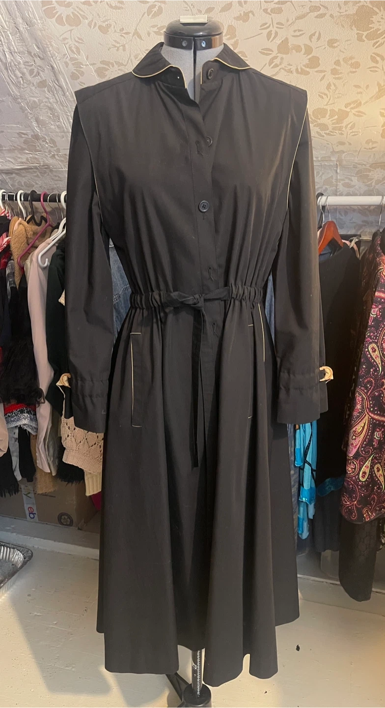 A rare and beautifully tailored vintage West Germany trench-style dress coat by Collection International Imports featuring high-quality Nino-Flex fabric. Elegant, structured, and timeless — this piece can be worn as a dress or a coat.