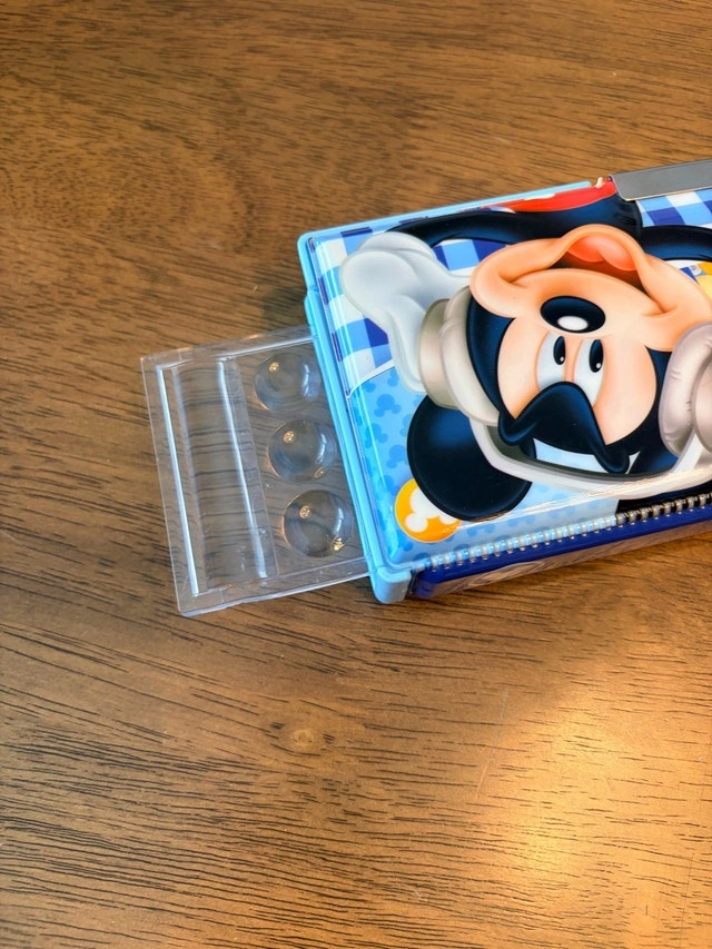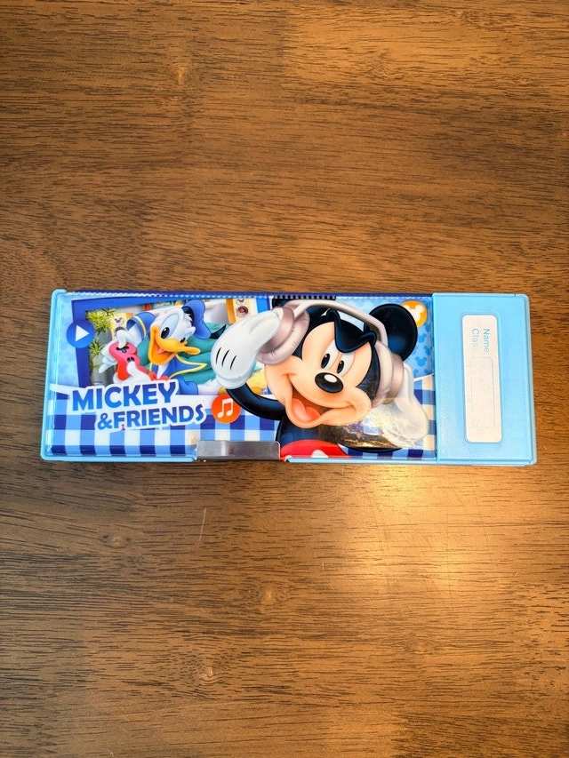 This Disney Mickey & Friends pencil case is perfect for keeping your stationery organized with a touch of fun. As you can see from the pictures, it's in used condition, ready to bring some Disney magic to your desk or backpack. It's been quite the treasure, storing pencils, erasers, and dreams of cartoon adventures, and now it's ready for a new home. If the ad is still up, the pencil case is available! Cash accepted.