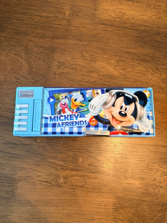 This Disney Mickey & Friends pencil case is perfect for keeping your stationery organized with a touch of fun. As you can see from the pictures, it's in used condition, ready to bring some Disney magic to your desk or backpack. It's been quite the treasure, storing pencils, erasers, and dreams of cartoon adventures, and now it's ready for a new home. If the ad is still up, the pencil case is available! Cash accepted.