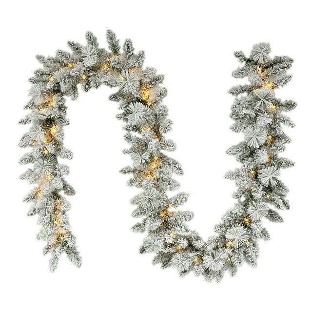 New Holiday Time 9' Pre-lit Flocked Christmas Garland, White, LE