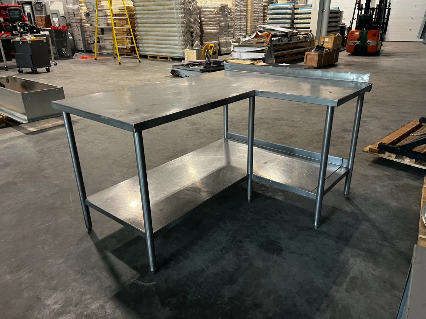 Selling a sturdy stainless steel commercial work table. It's in great condition and would be perfect for a restaurant, food prep area, or even a workshop. It features a lower shelf for extra storage. A great addition to any workspace!
