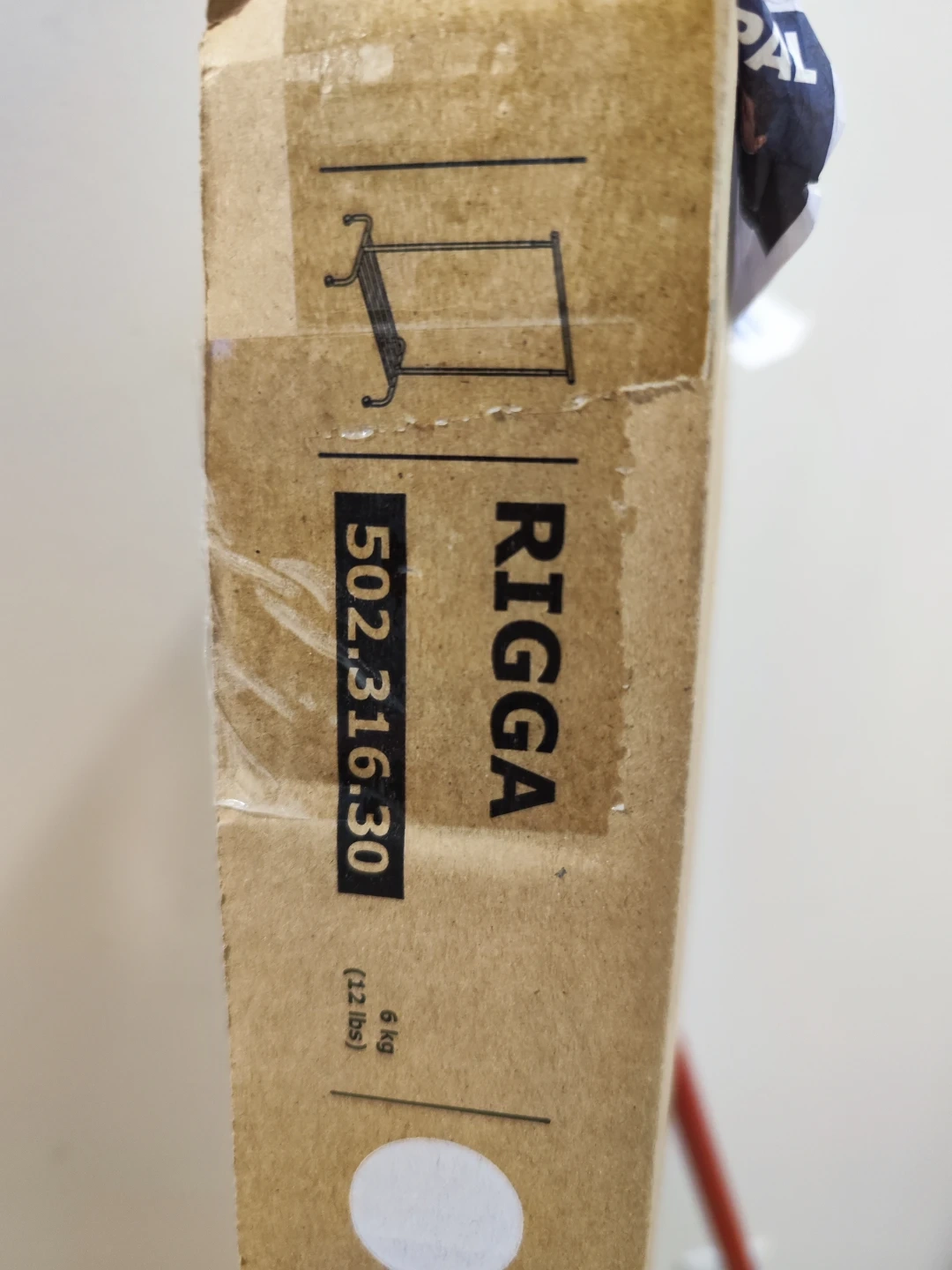 This is an IKEA RIGGA clothes rack. It's a new item in its original packaging. Maximum load 6 kg (12 lbs).