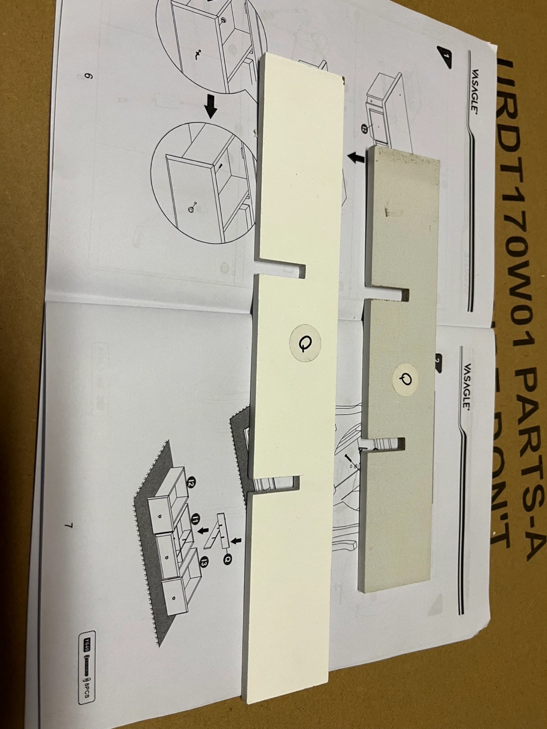 See pictures for details, this pieces are not visible when vanity is assembled.