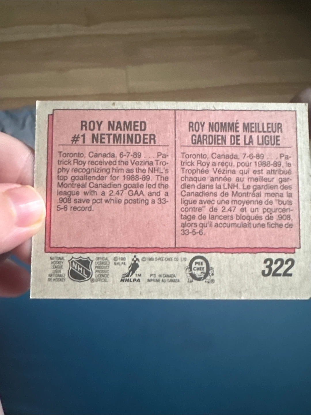 1989 O-Pee-Chee Patrick Roy Vezina Trophy Hockey Card