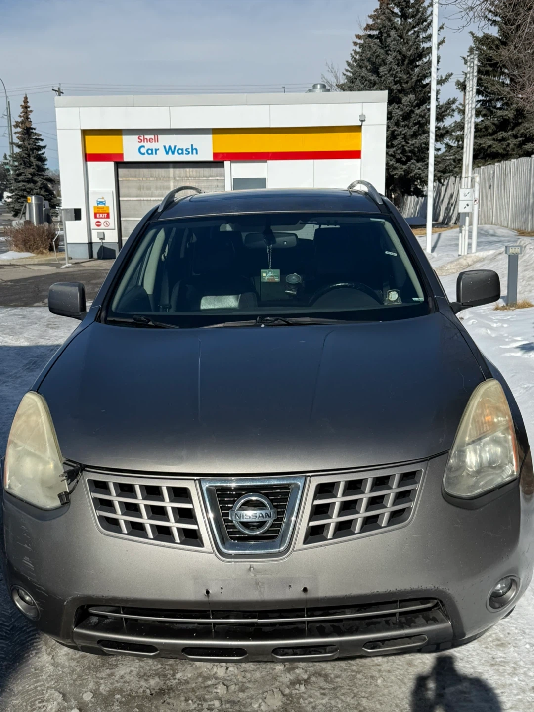 Grey Nissan Rogue SUV.