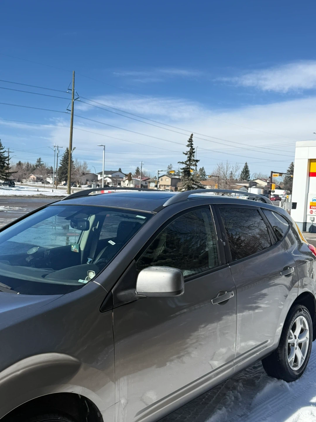 Grey Nissan Rogue SUV.
