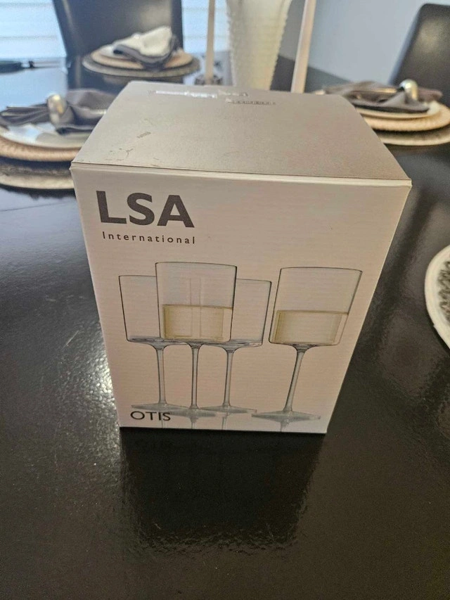 Elevate your dining experience with this set of four LSA International Otis handmade white wine glasses. These glasses are new, never used and come in their original box, ready to add a touch of elegance to your table.