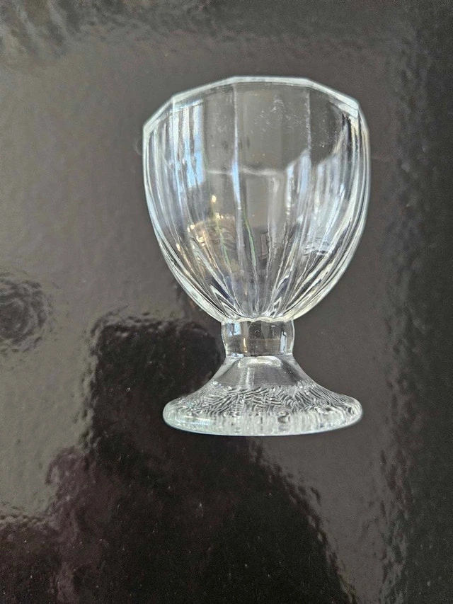 Elevate your table with this set of 8 vintage egg cups, perfect for adding a touch of retro charm to your Easter breakfast/ brunch table. These delicate cups have a ribbed fluted glass with a frosted stem and are stamped with the letter "D". They are ready to cradle your soft-boiled eggs with style.