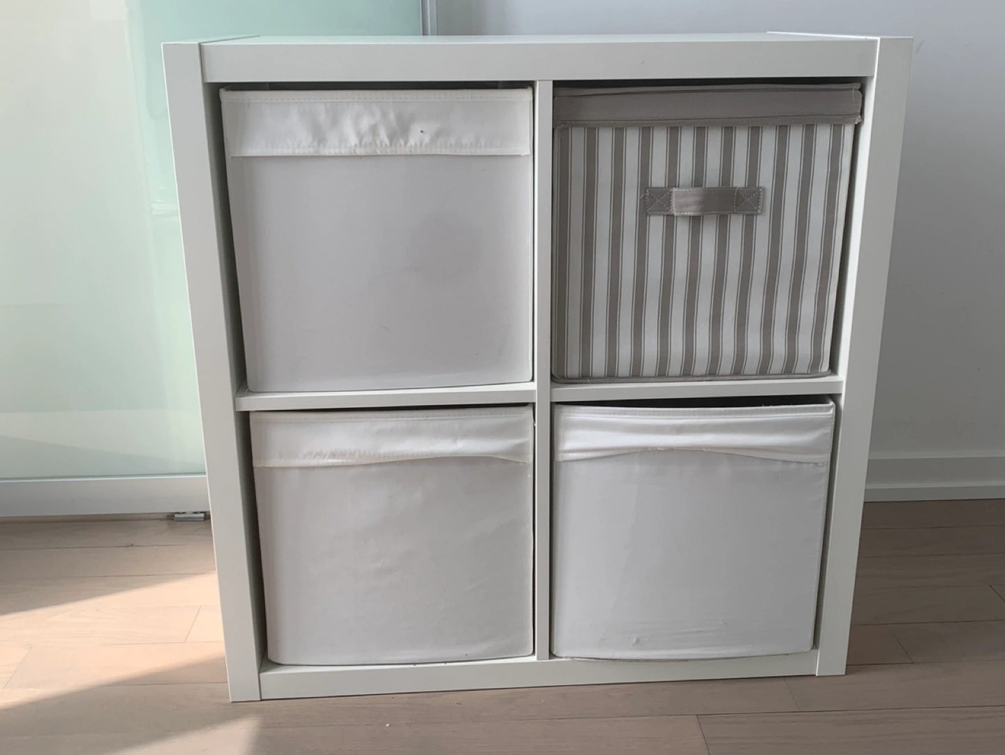 White kallax shelf. Perfect for storing heavy stuff as well.