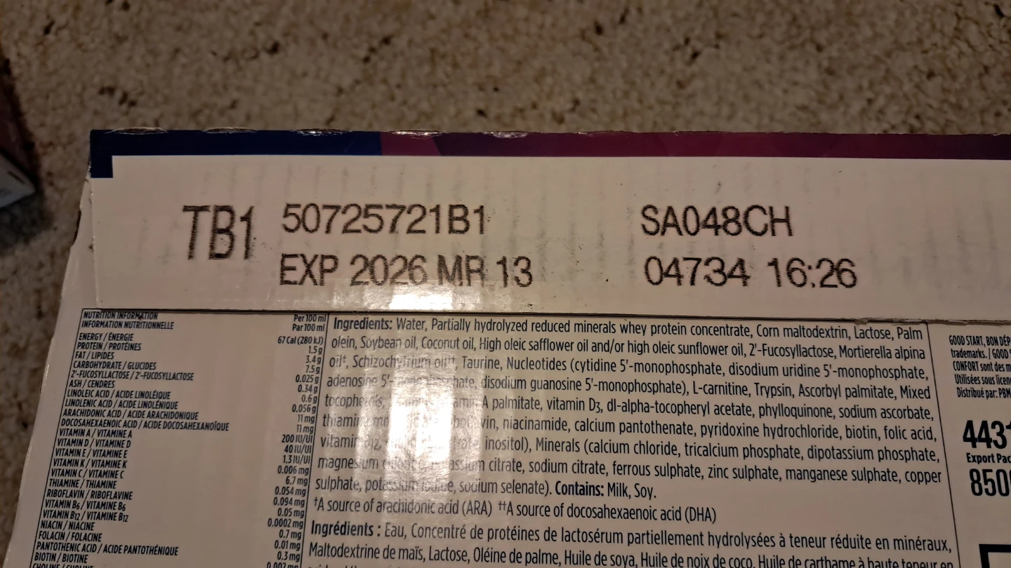 Selling a box of Good Start Bon Départ Plus Ready-to-Feed liquid formula. It's our closest liquid to breast milk. Each box contains 15 x 250ml units. Expiry date is 2026 March 13