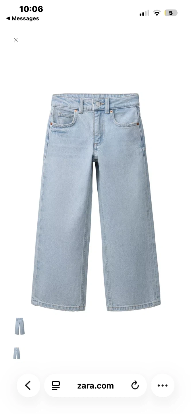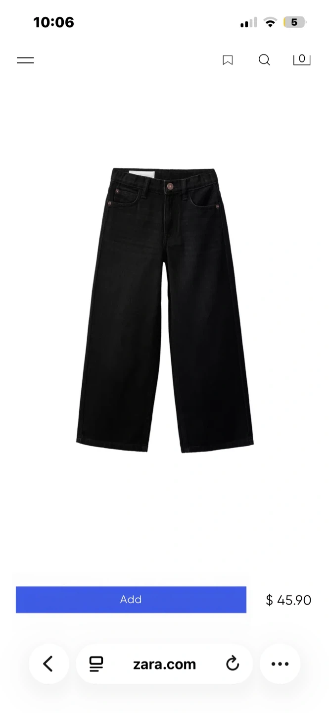 Two pairs of Zara wide leg jeans, one in a light wash and the other in black. Both are size 11-12 and perfect for those who are around 152 cm! The black one has a tiny rip on the side so I adjusted the price !