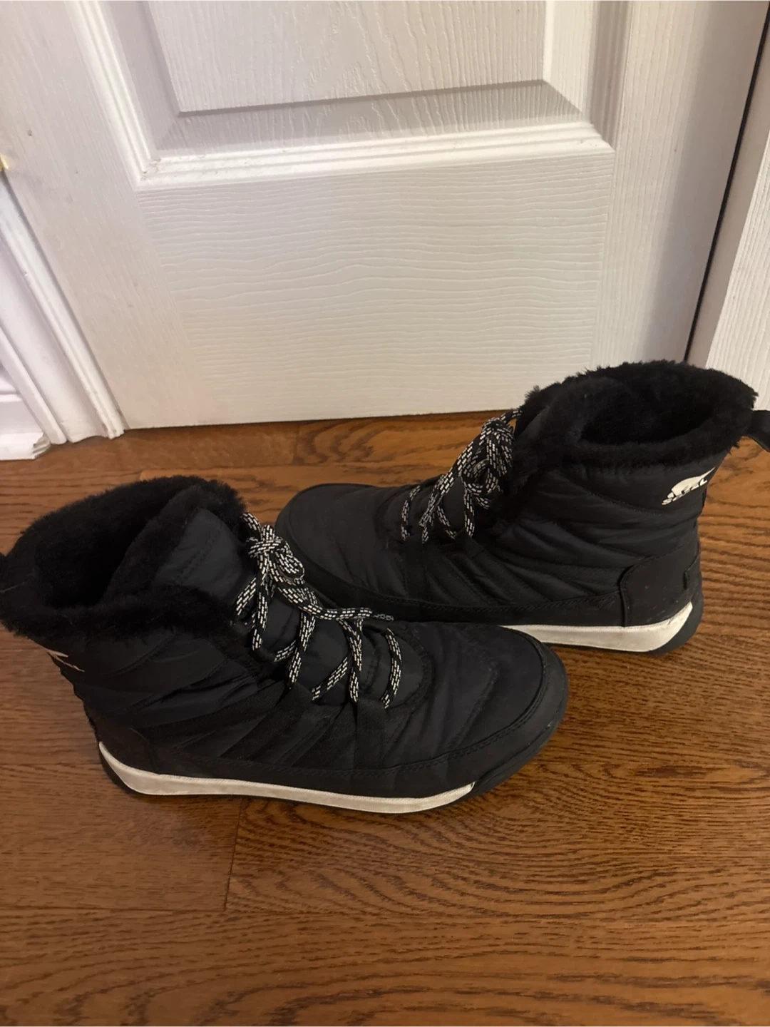 Selling a pair of Sorel women's winter boots in size 8. They're in good shape and ready to keep your feet warm this winter! They have a black quilted design with faux fur trim.