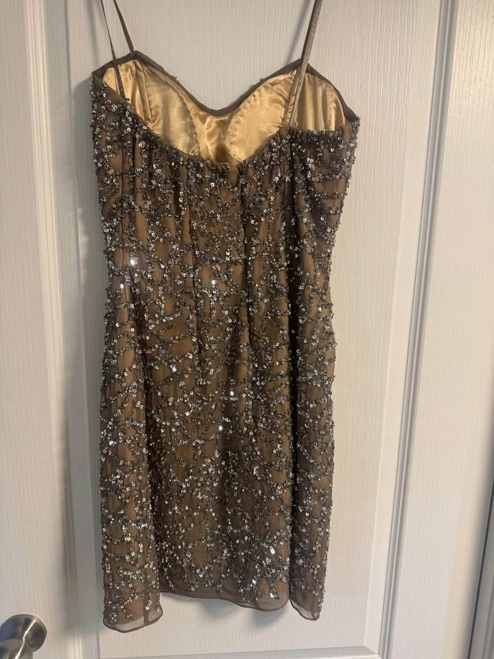 Sparkly SCALA mini dress. This gorgeous dress has a 100% silk shell with tons of silver sequins. Size 2. Perfect for a party or special event.