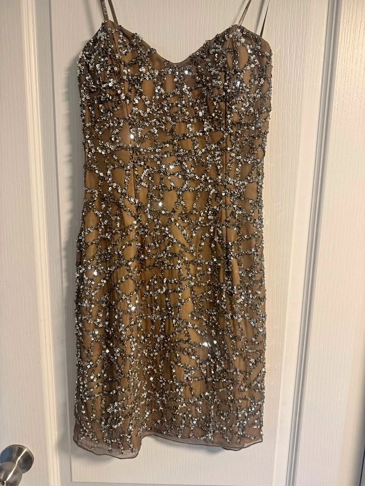 Sparkly SCALA mini dress. This gorgeous dress has a 100% silk shell with tons of silver sequins. Size 2. Perfect for a party or special event.