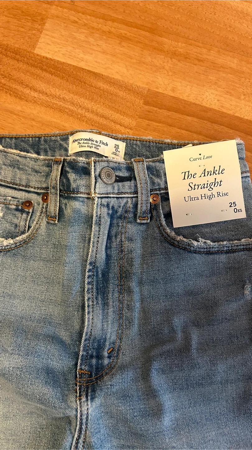I'm selling a pair of Abercrombie & Fitch The Ankle Straight Ultra High Rise jeans. They are a size 0XS.