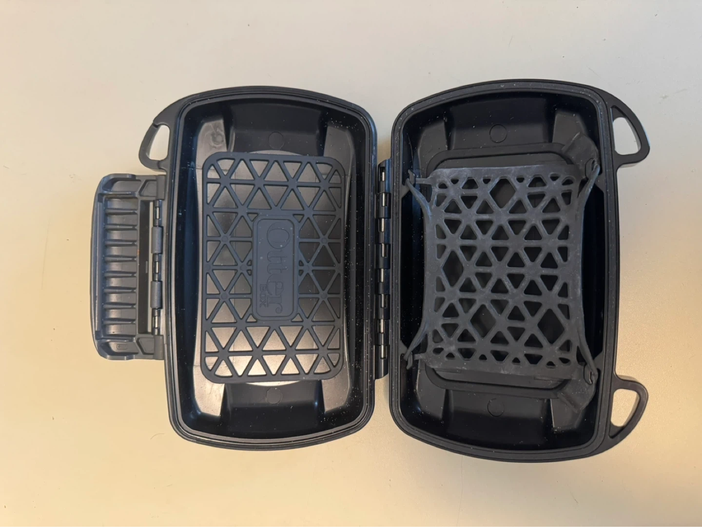 Black OtterBox utility case. Protects your gear from the elements. Includes internal padding and secure latch closure.