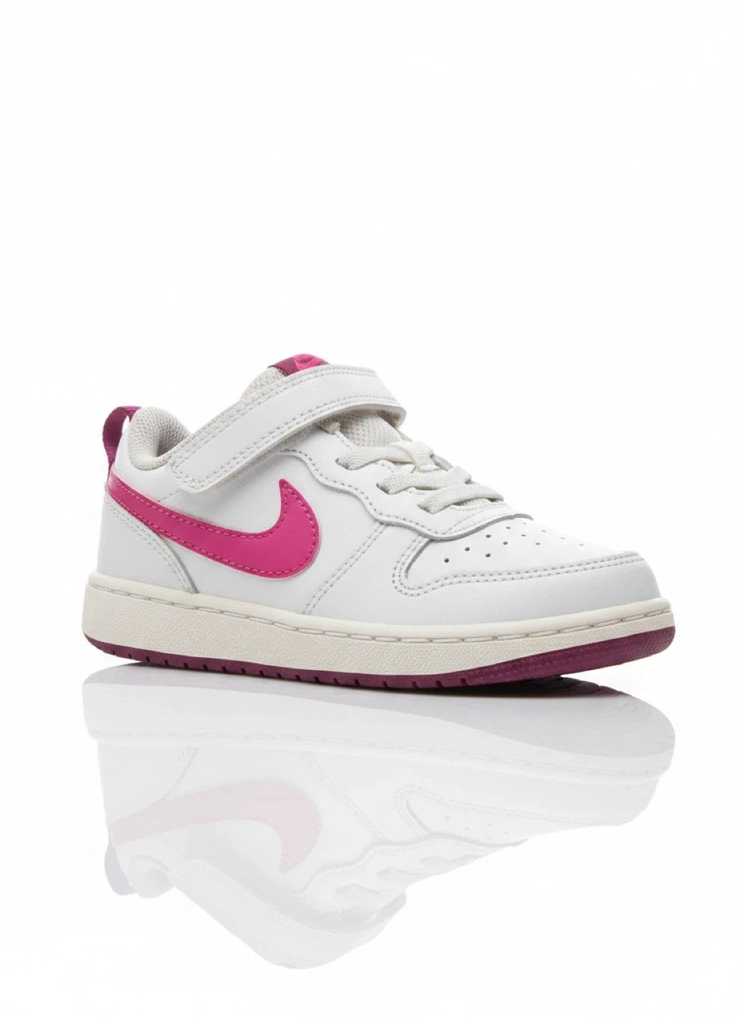These Nike Court Borough Low 2 toddler shoes are in great shape and ready for a new adventure! They feature a classic white design with vibrant pink accents. Perfect for your little one's everyday wear. Size 8C US. 7.5 UK.