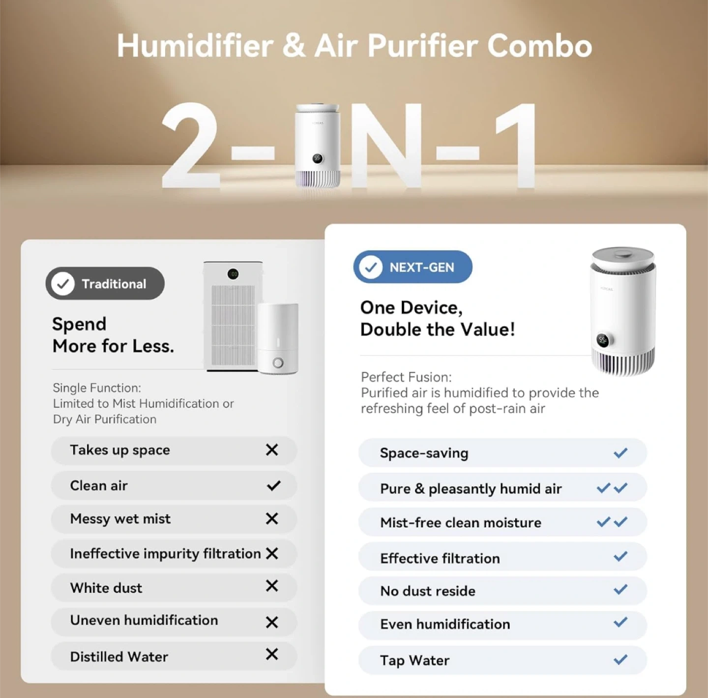 Air Purifier and Humidifier in One, 2 in 1 Evaporative Humidifier and HEPA Filter Air Purifier Combo for Bedroom, 0.8 Gal Tank Top Fill brand new in the box factory sealed