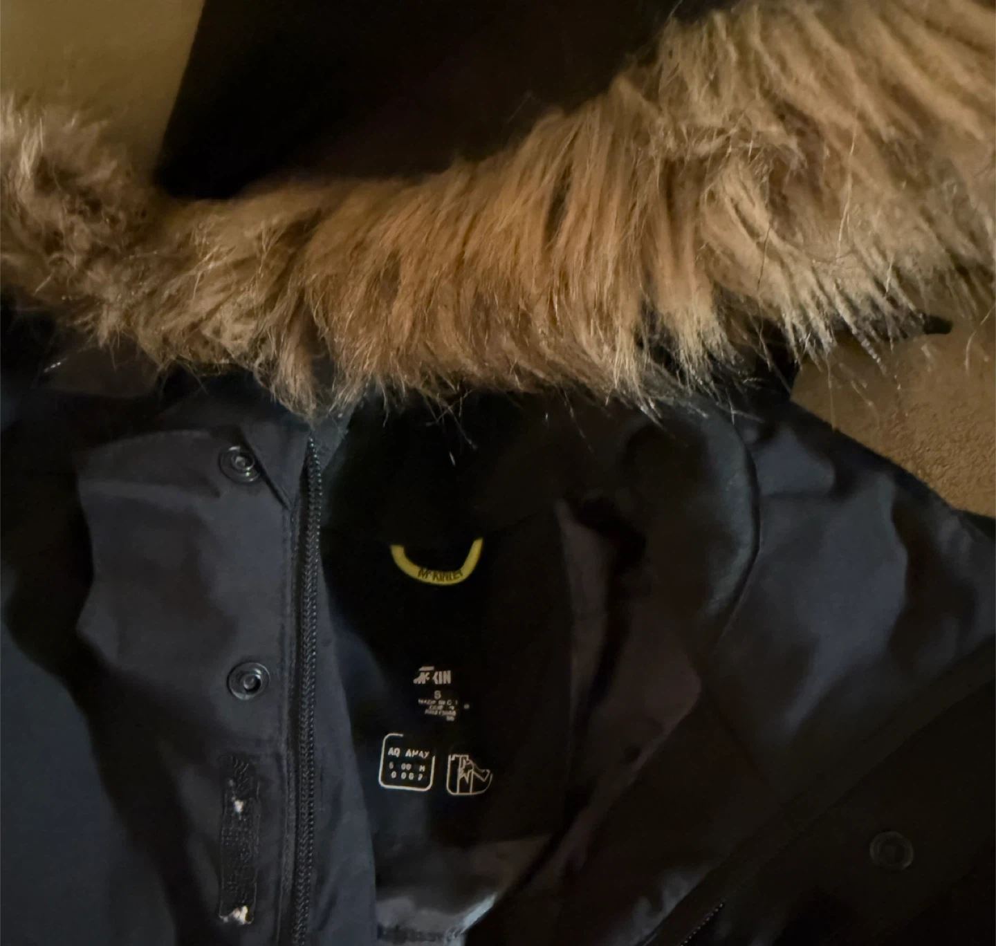Mckinley ski jacket and Columbia pants set in navy and grey. Jacket features a faux fur-lined hood and elasticated waist. Pants have a durable construction for cold weather. Great for hitting the slopes! The zipper on jacket is very hard to zip up.