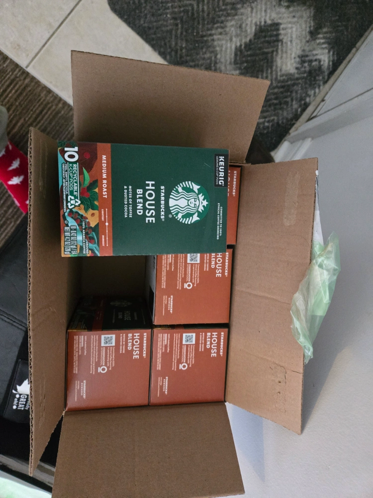 Brand new, unopened box of Starbucks House Blend K-Cup pods. Medium roast coffee. Ten pods total. Perfect for your Keurig coffee maker.