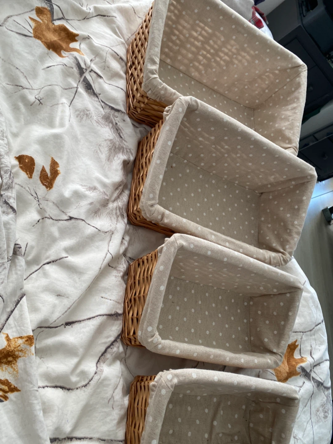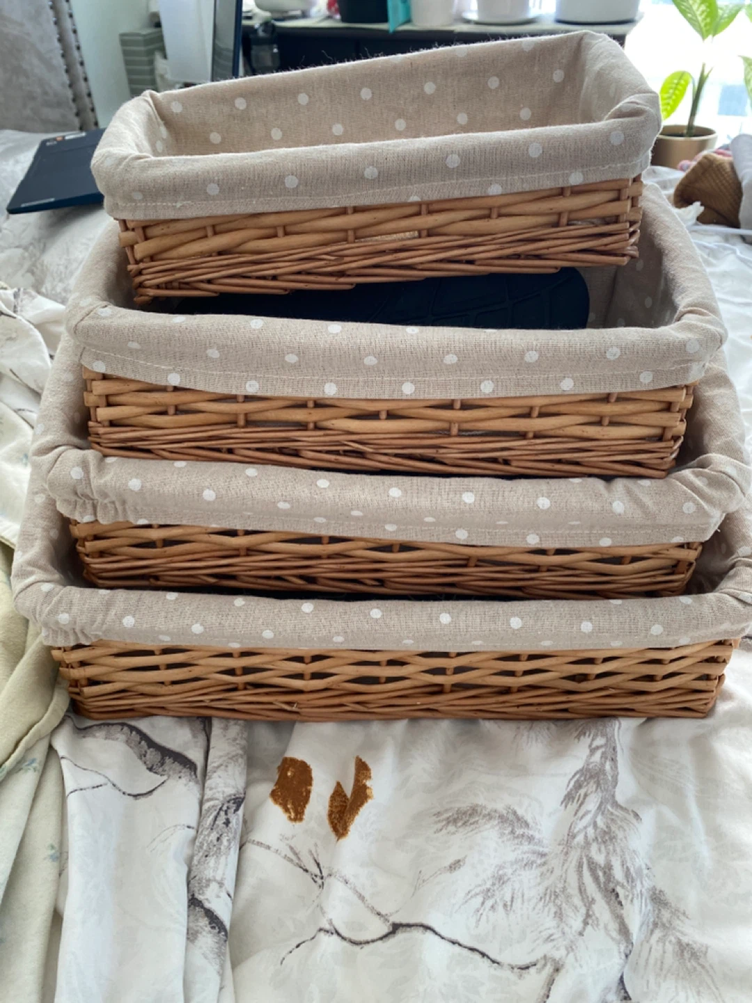 π Set of 4 Woven Storage Baskets with Polka Dot Liners π