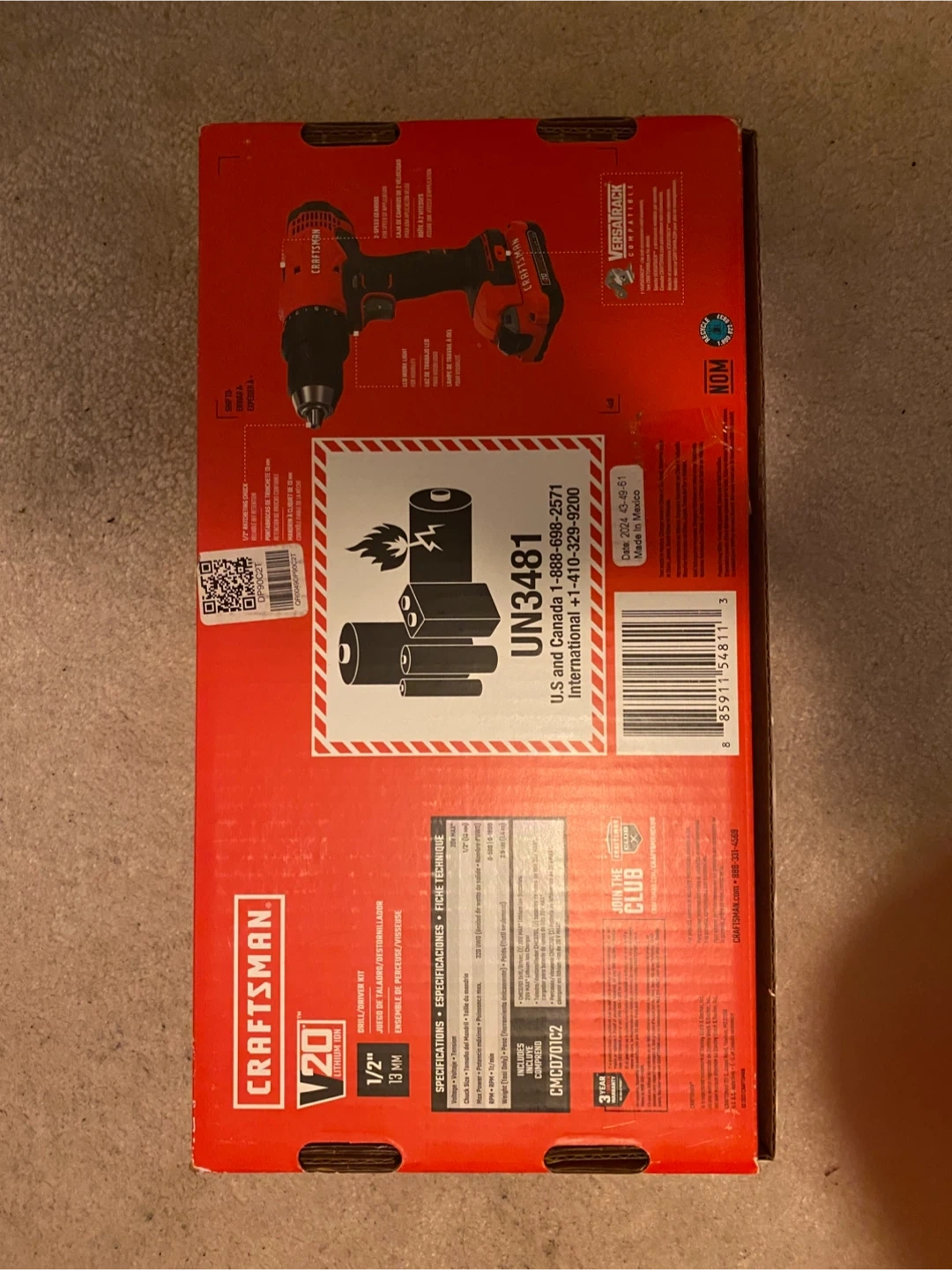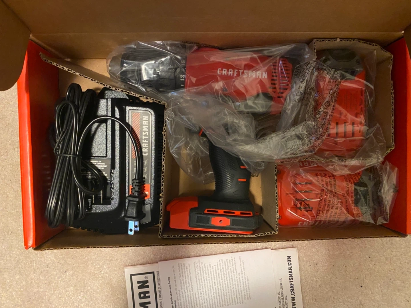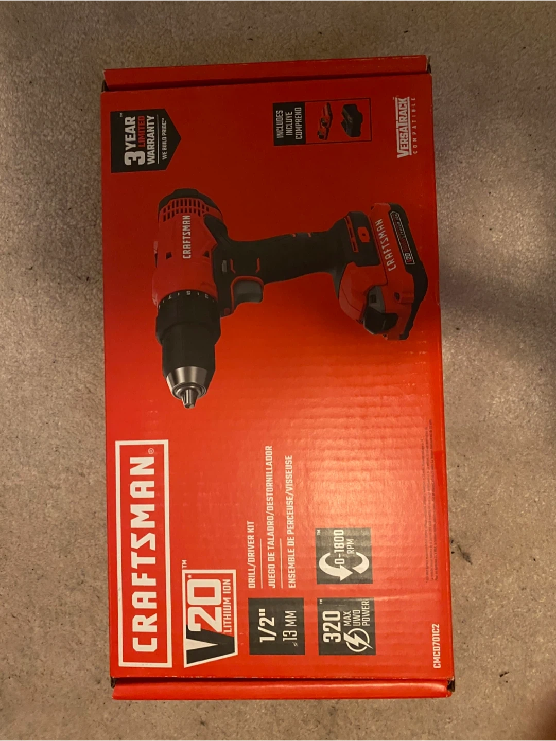 Craftsman V20 cordless drill/driver kit. Includes drill, charger, and battery. It's a 1/2" chuck size with 0-1800 RPM. UNUSED! BRAND NEW! COMES WITH 2 BATTERIES AND A CHARGING STATION.