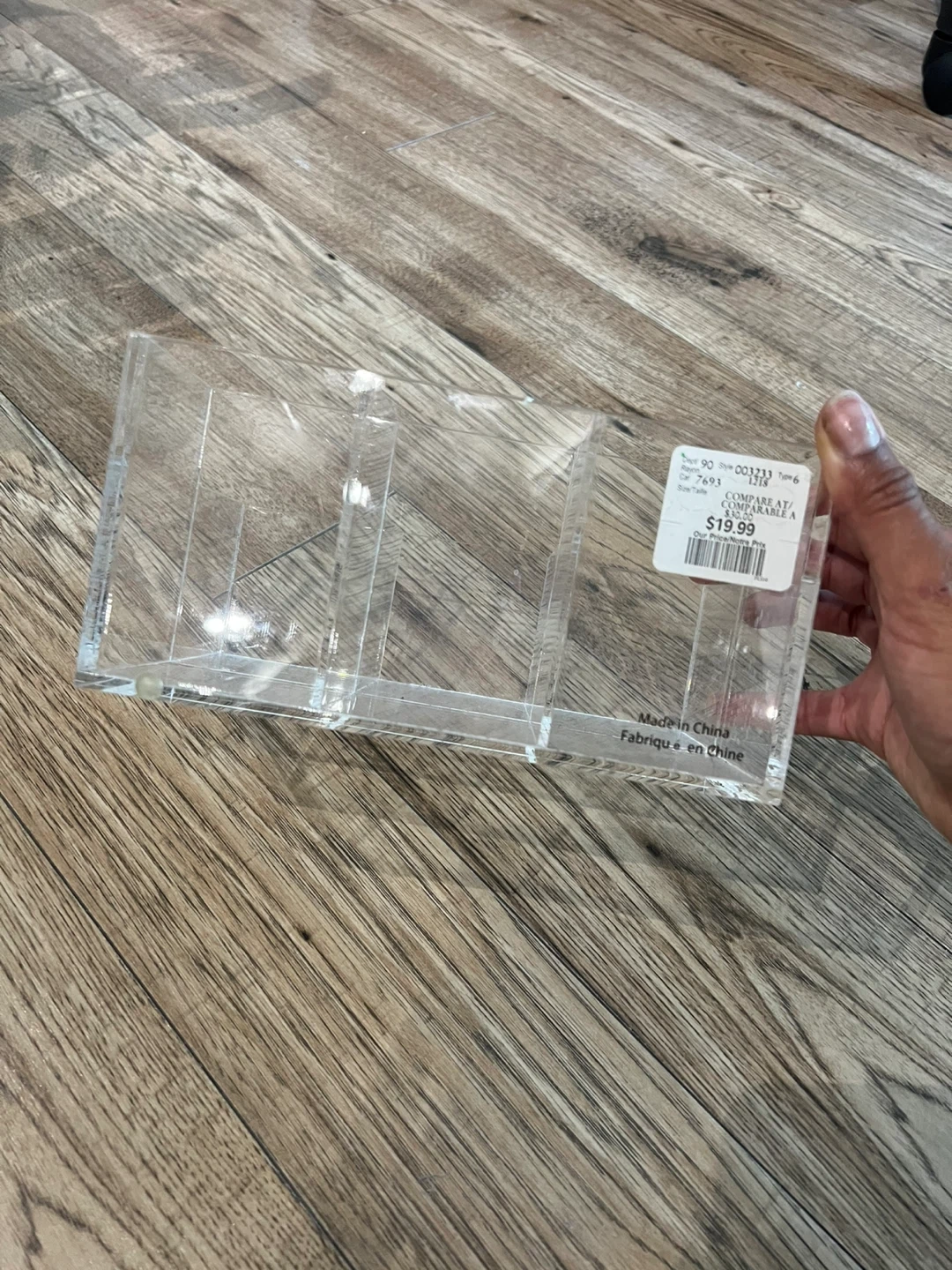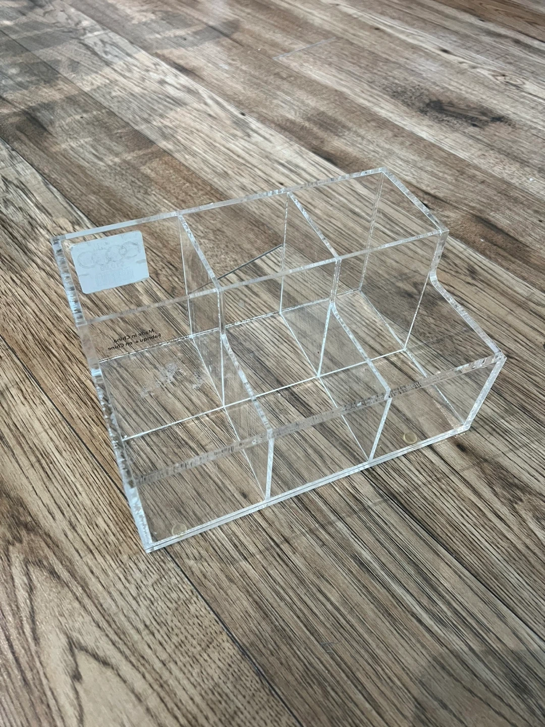 Here's a clear acrylic makeup organizer! It has multiple compartments to keep your cosmetics neat and tidy. Originally bought for $19.99, it's in great condition and ready to help you organize your space