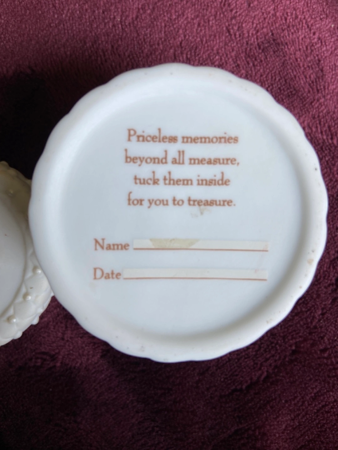 A lovely small trinket box. Comes with a lid that says "March aquamarine". The lid has a blue jewel. On the inside lid a quote and space to add a name and date. It's a perfect way to keep your precious things safe and sound. Great bd gratulation Christmas gift
