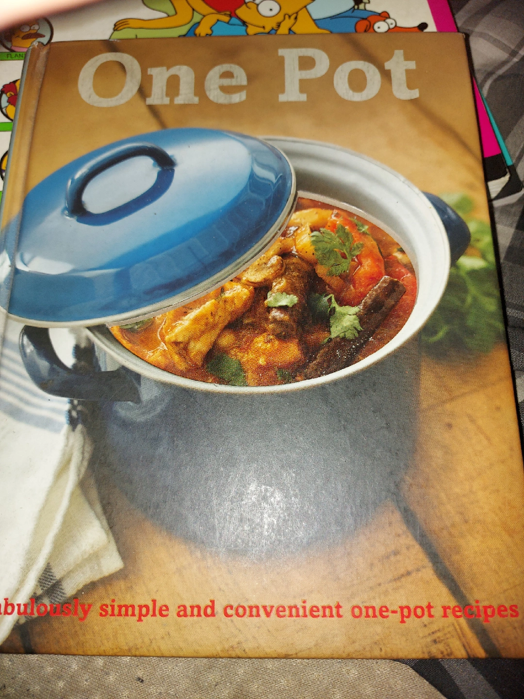 Selling a One Pot cookbook filled with fabulously simple and convenient one-pot recipes! It features a variety of dishes, including beef and vegetable stew with corn. Perfect for easy and delicious meals